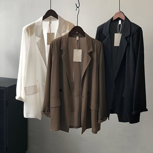 Loose-Fit Cotton Linen Blazer with 3/4 Sleeves