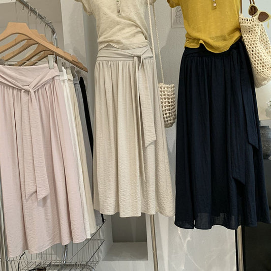 High Waist Tie Waist A Line Maxi Skirt