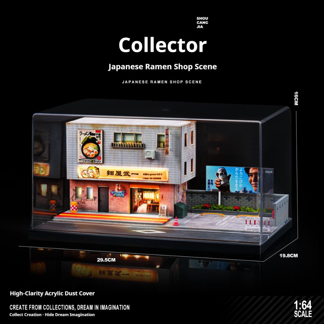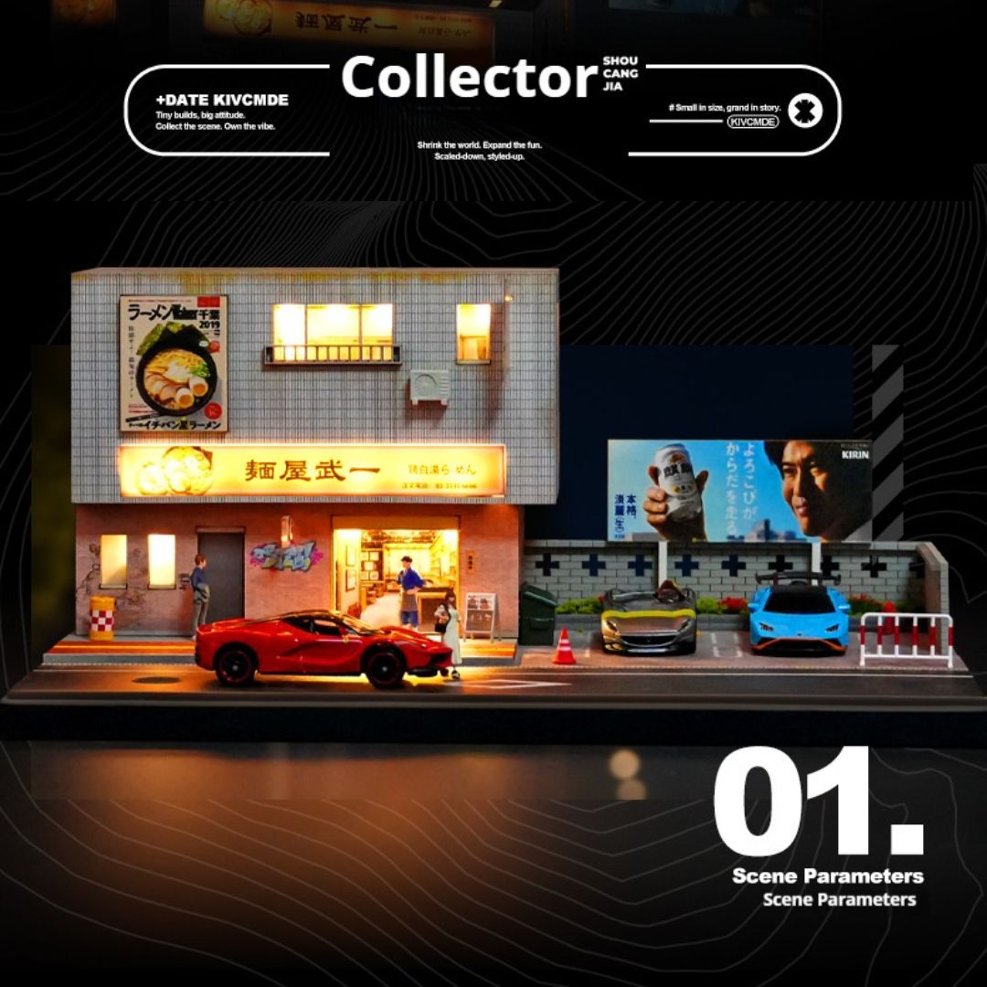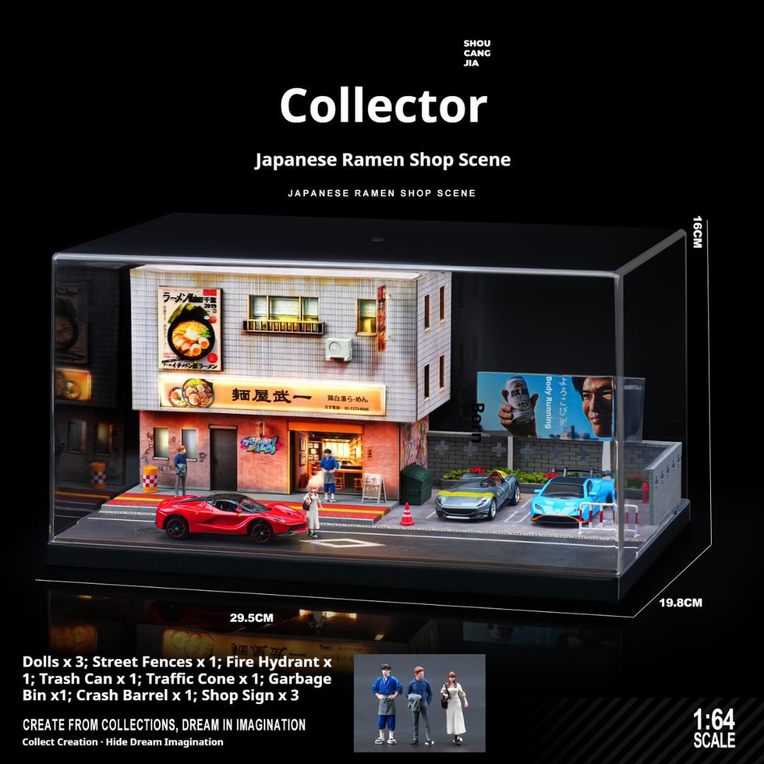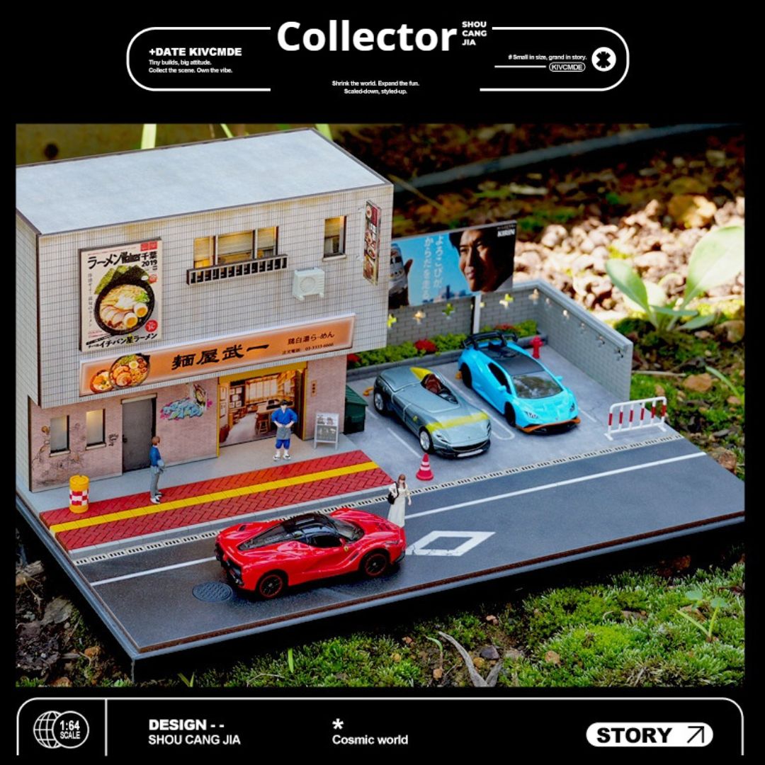 この精巧な1/64スケールのミニチュアモデルで、日本のラーメン屋の魅力をデスクに再現!車モデル愛好家やコレクターにぴったりのジオラマで、LED照明付きで温かみのある雰囲気を作り出します。
