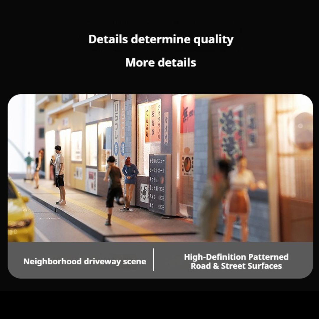 ✅ リアルなデザイン: 小さな提灯、建物、歩道など、和風の街並みを再現。
