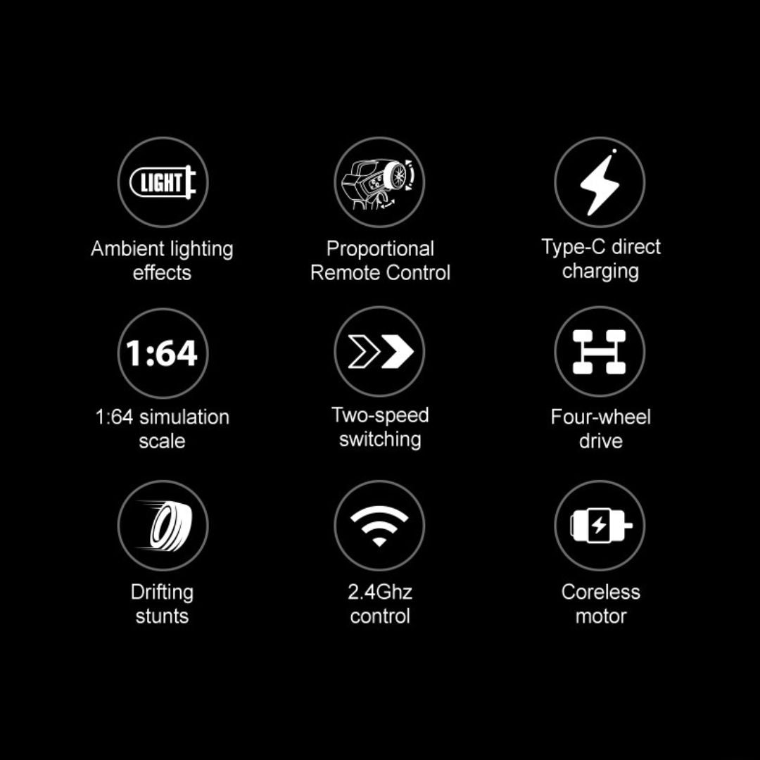 · 📡 2.4Gワイヤレスリモコン:干渉防止技術により、複数の車両が同時に走行し、信号の問題を回避できます。フルプロポーショナルコントロールに対応し、正確なハンドリングを実現します。