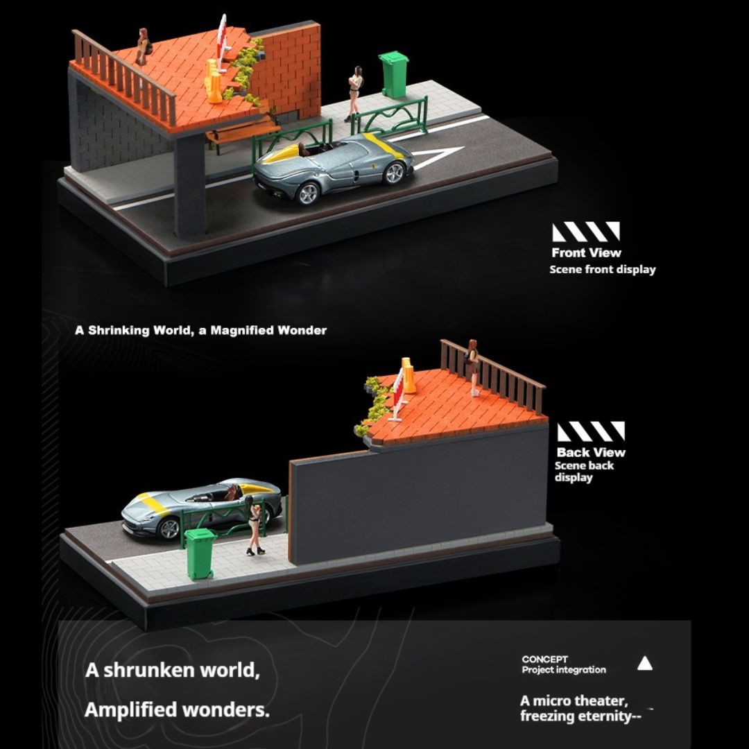 車のコレクションやインテリアにぴったりのユニークで目を引くディスプレイをお探しですか?この1:64スケールのミニチュアストリートシーンモデルが最適です! 🌆