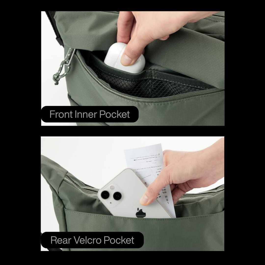 - 📦広々とした収納力:メインコンパートメントは、携帯電話、財布、ノート、充電器などの必需品をたっぷり収納できます。さらに、アクセサリーポケットも付いているので、整理整頓も万全です。