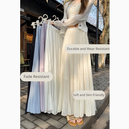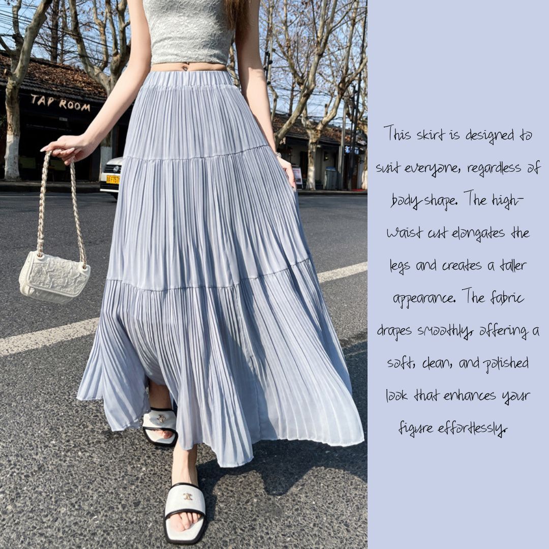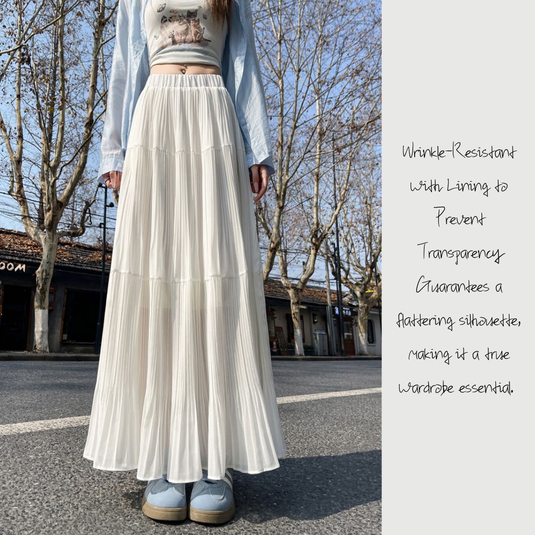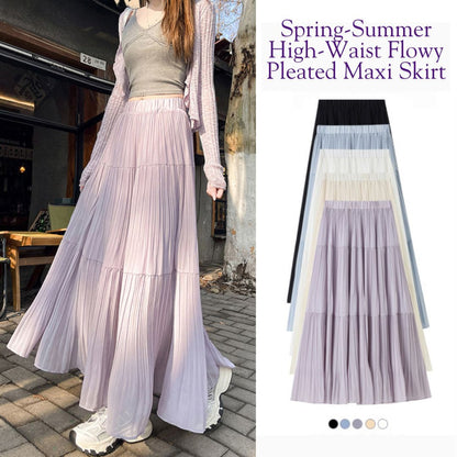 Spring-Summer High-Waist Flowy Pleated Maxi Skirt