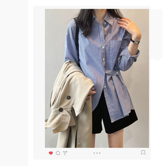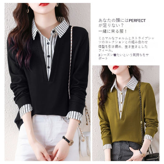 條紋翻領假兩件長袖上衣定價 HK$99.00定價單價 / 每-