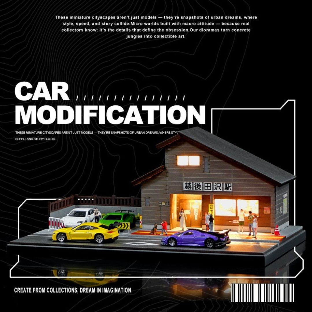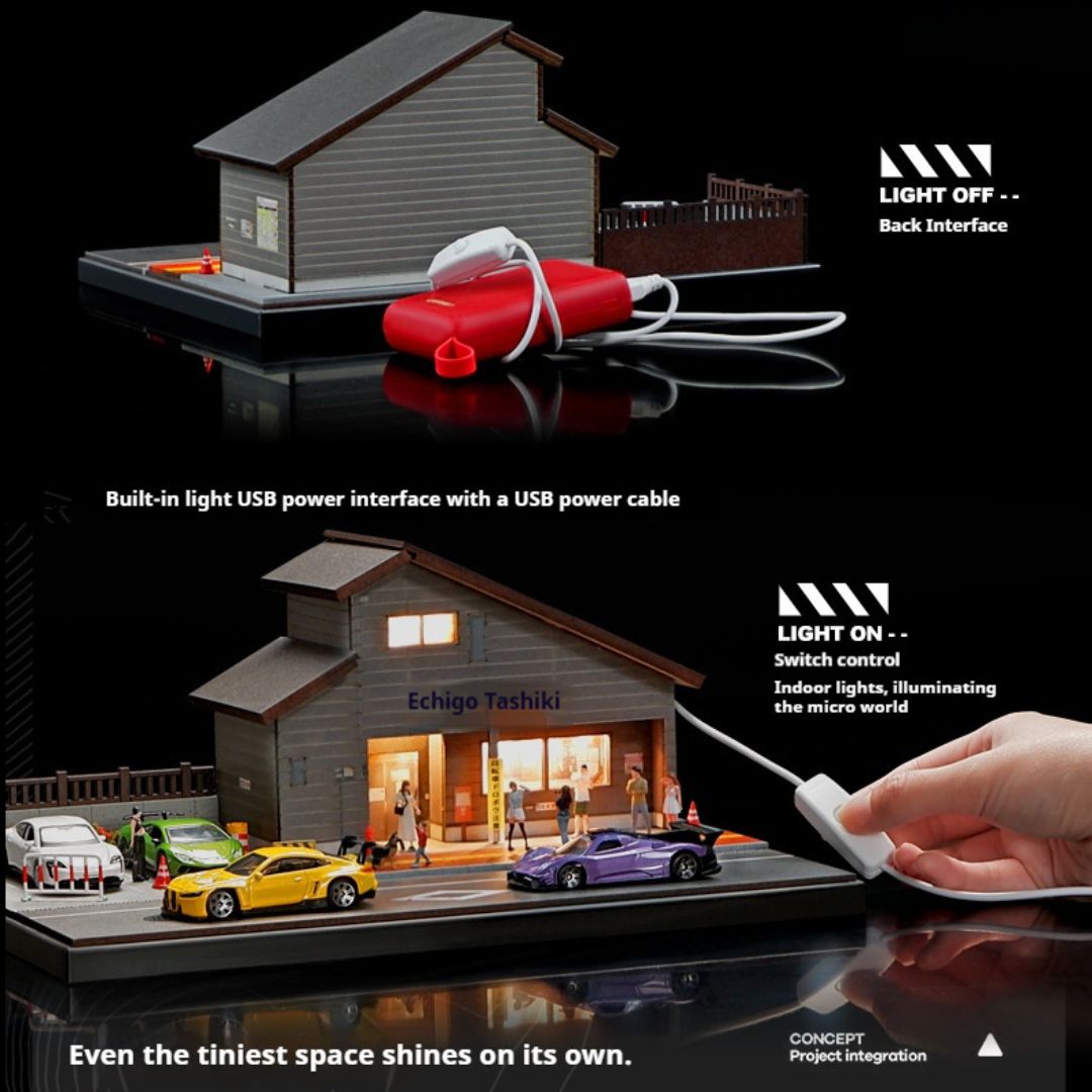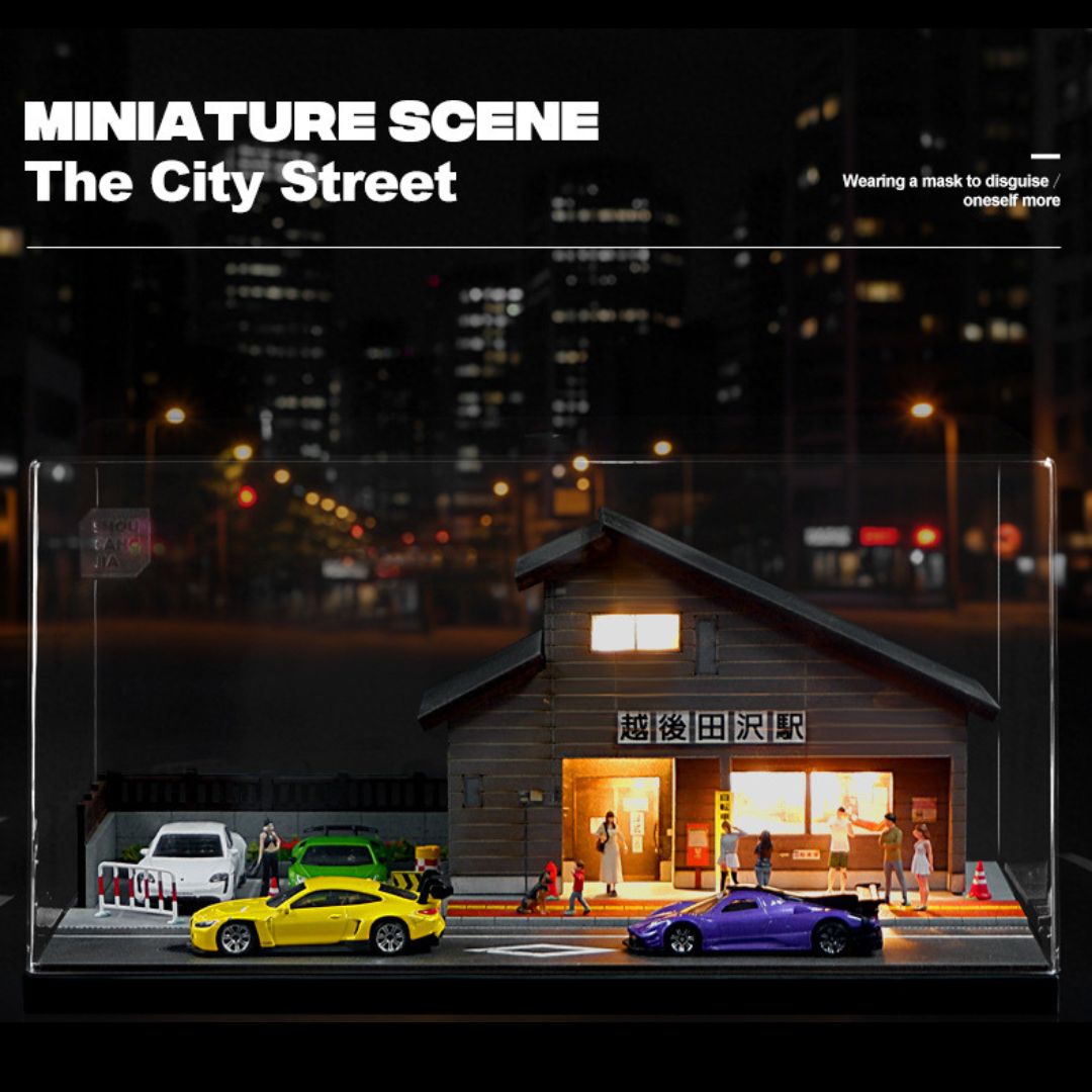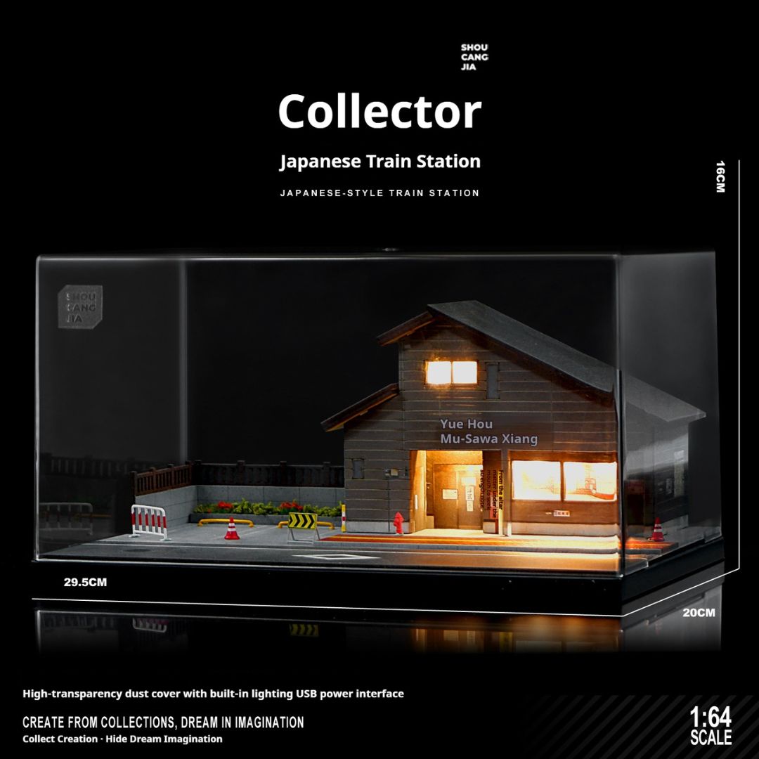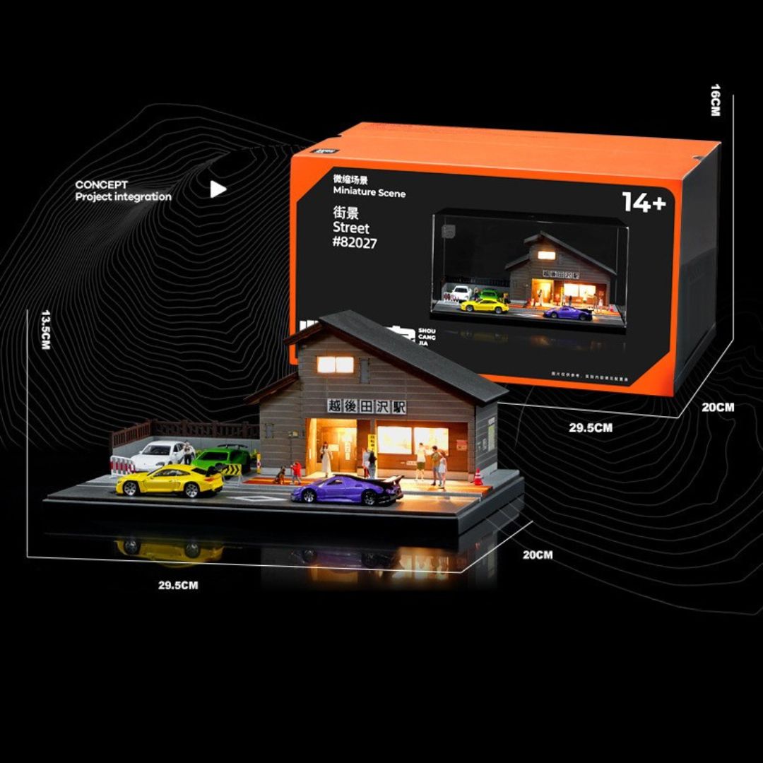 🌟 收藏家與攝影愛好者的完美選擇! 這款精緻的1/64比例微縮模型,重現了日式房屋與車站場景,並配有LED燈光,為您的微型車收藏或攝影背景增添真實感。
