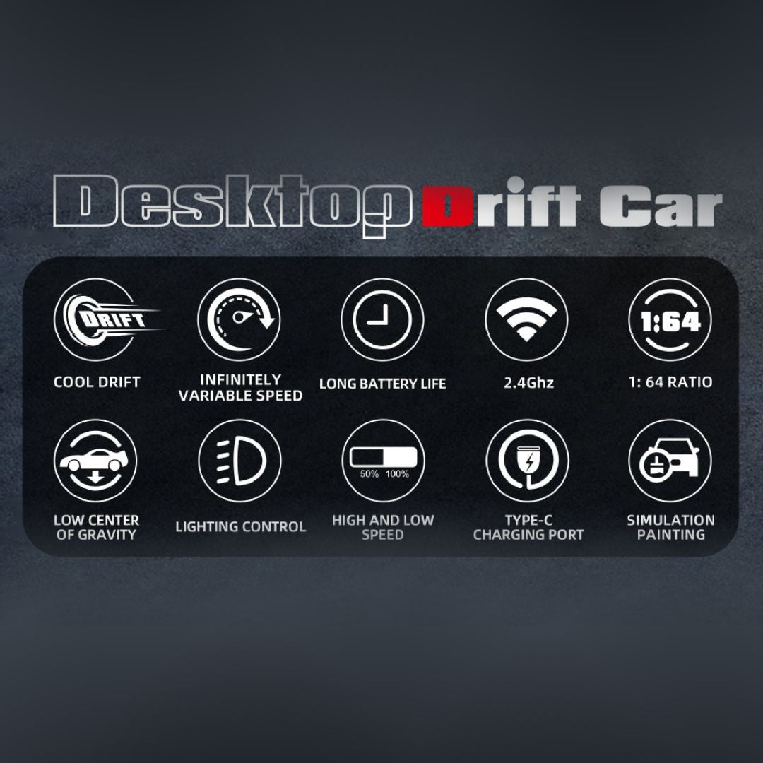 · 🚗迷你比例桌面速度:精密 1:64 比例,機身小巧,可隨時隨地帶來漂移樂趣。