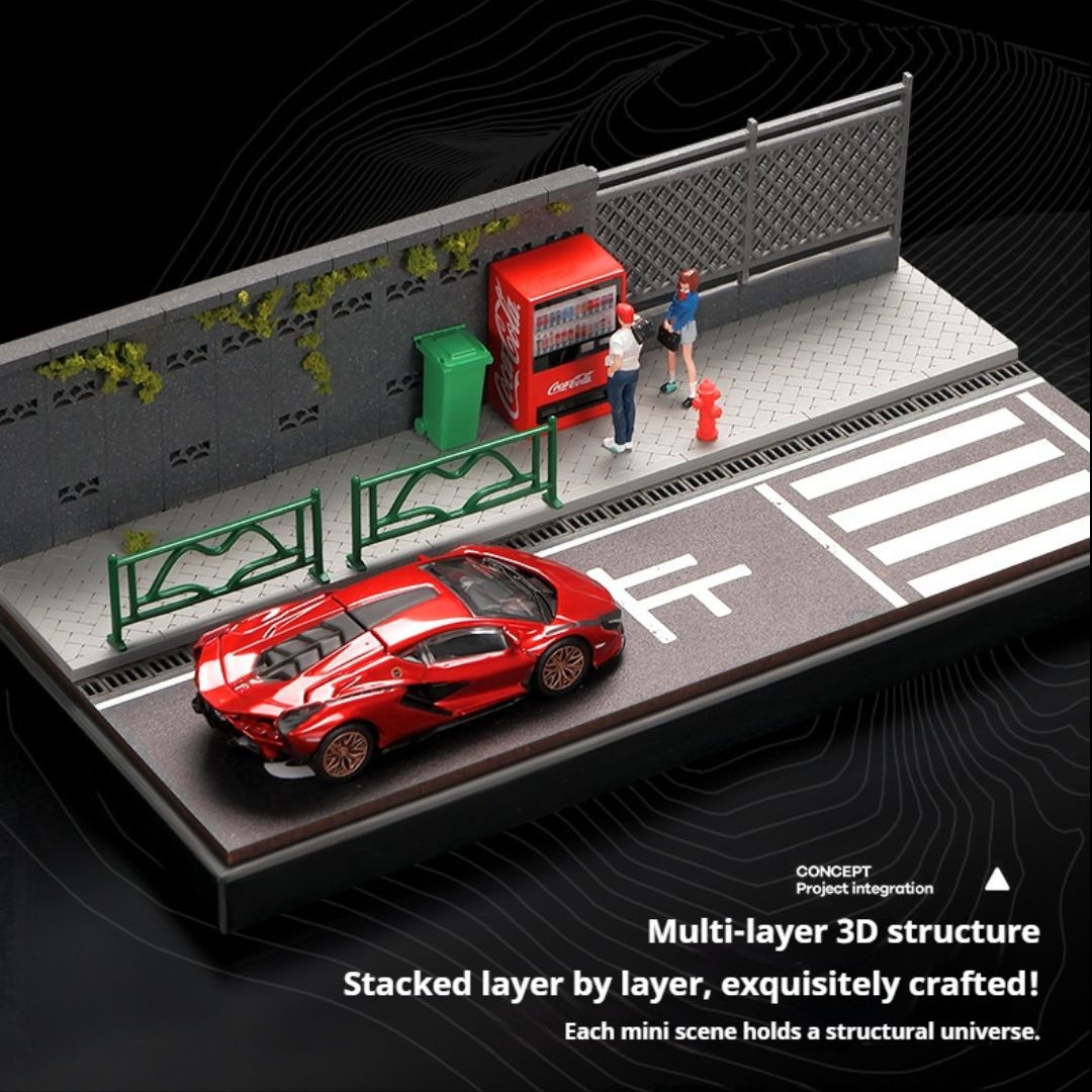 還在為您的車模收藏或家居裝飾尋找獨特又吸睛的展示品嗎?這款1:64比例的微縮街道場景模型絕對是您的理想選擇! 🌆