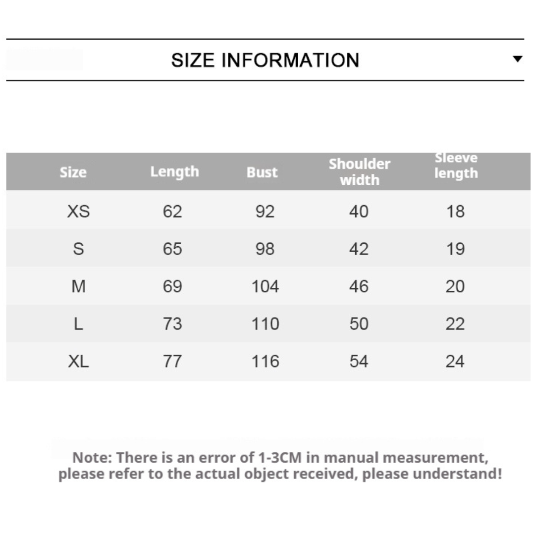 XS:長度~62, 胸圍~92 , 肩寬~40, 袖長~18