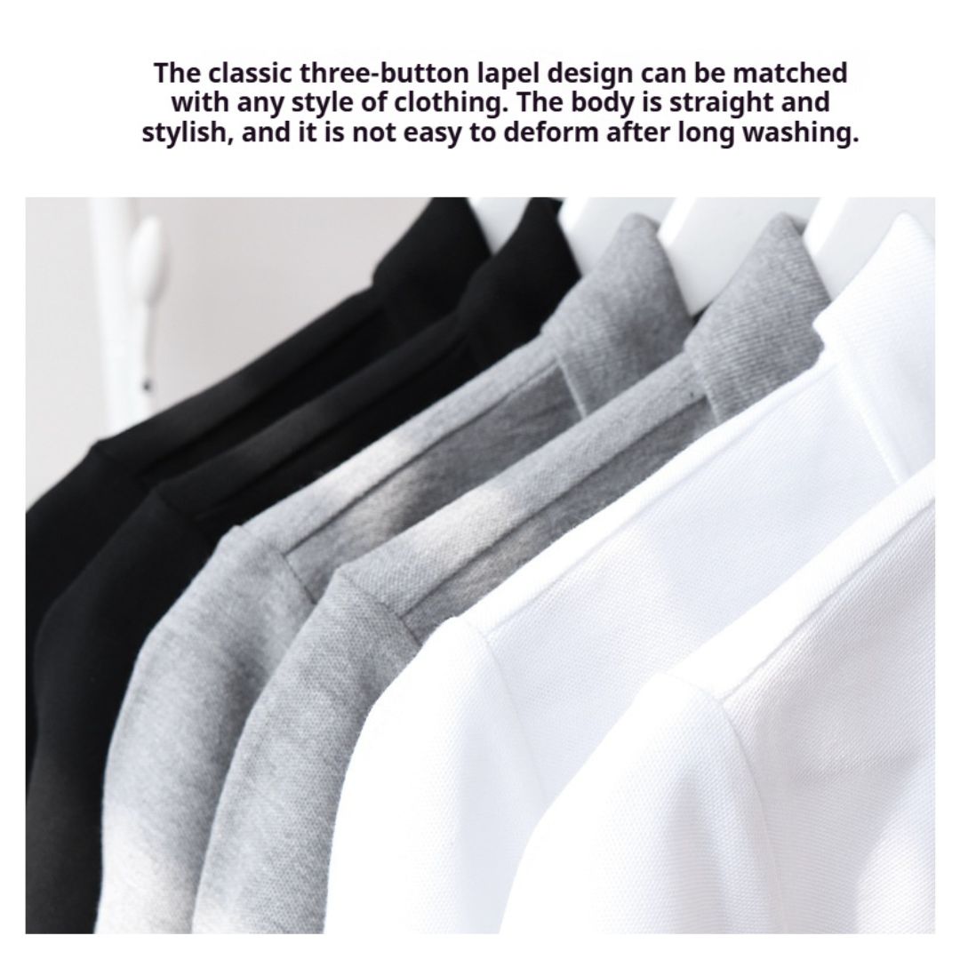 ⭕️ 翻領POLO設計,鈕扣開襟方便穿脫,輕鬆駕馭休閒或商務場合。