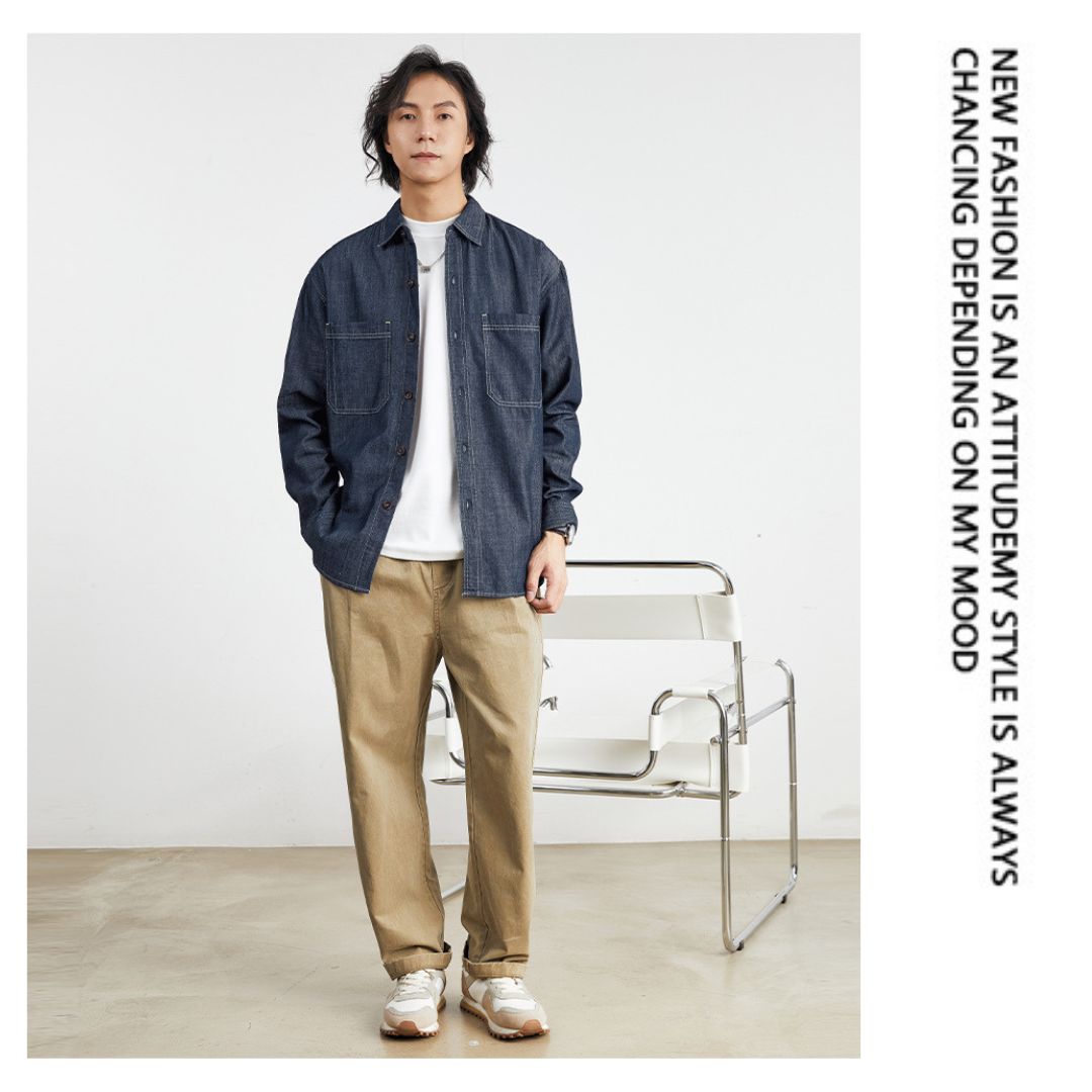 美式復古牛仔長袖襯衫