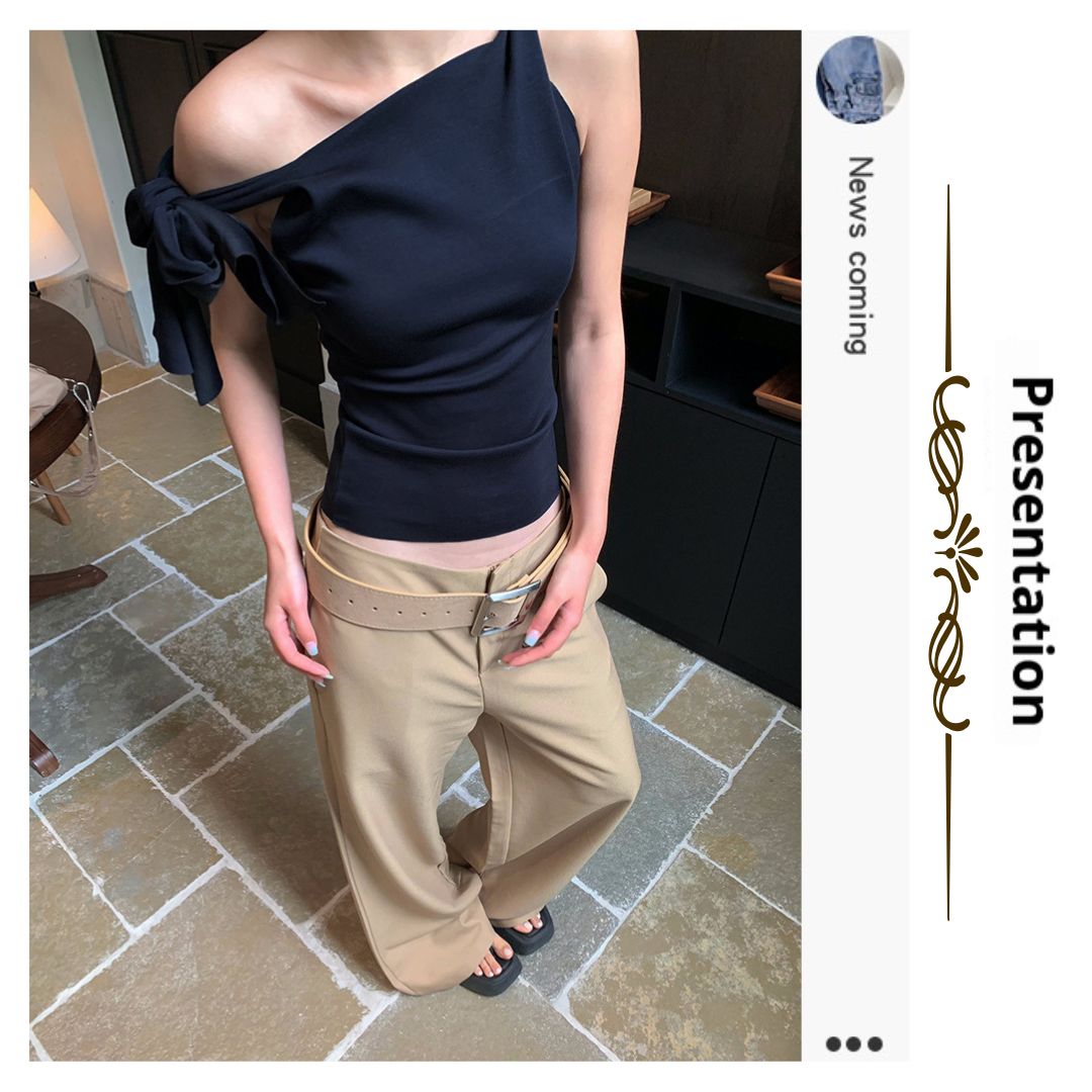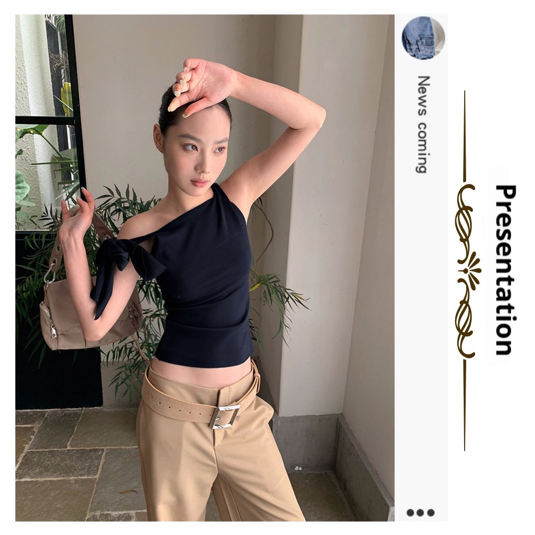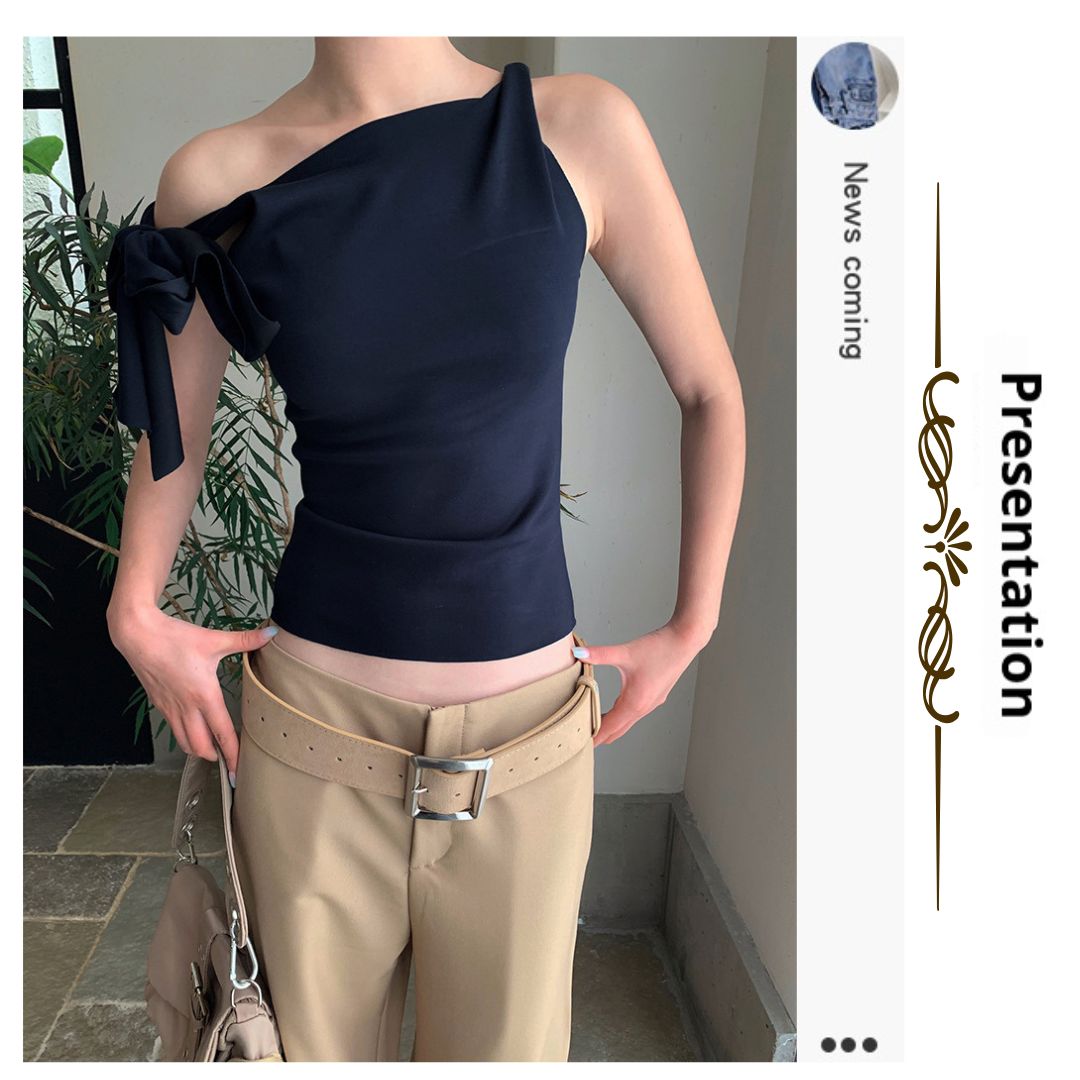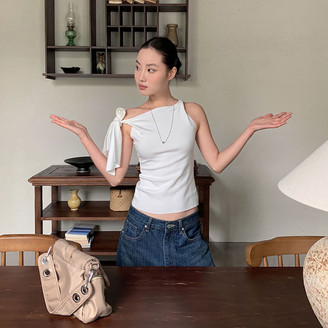 不規則綁帶斜肩上衣