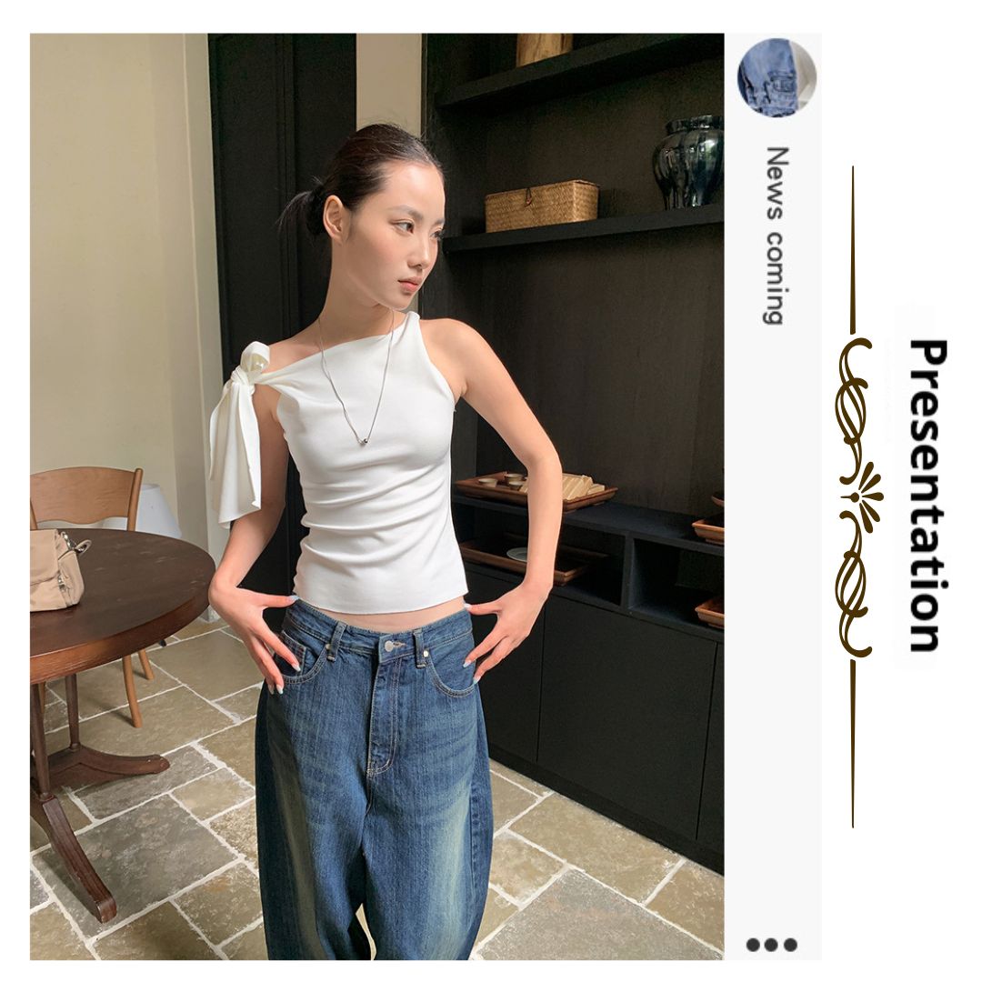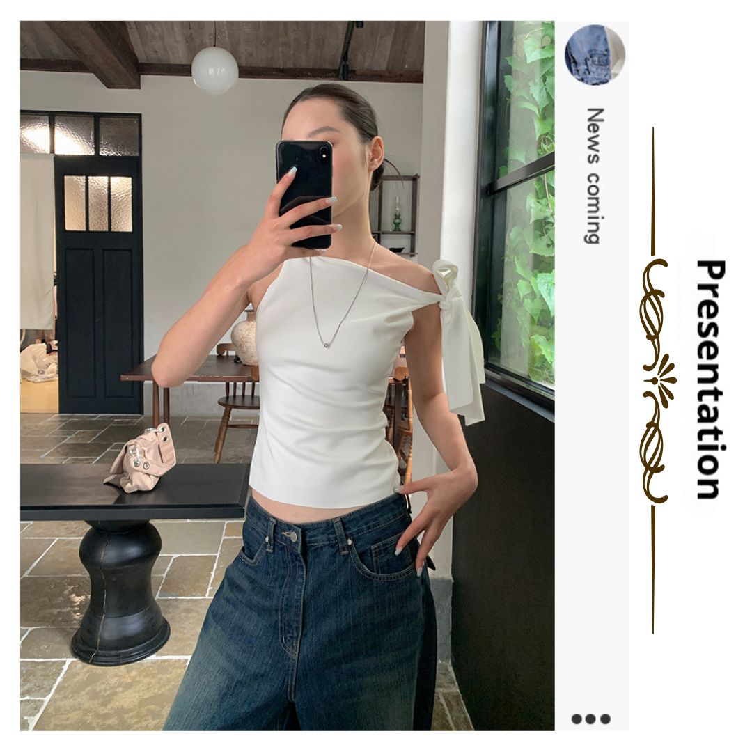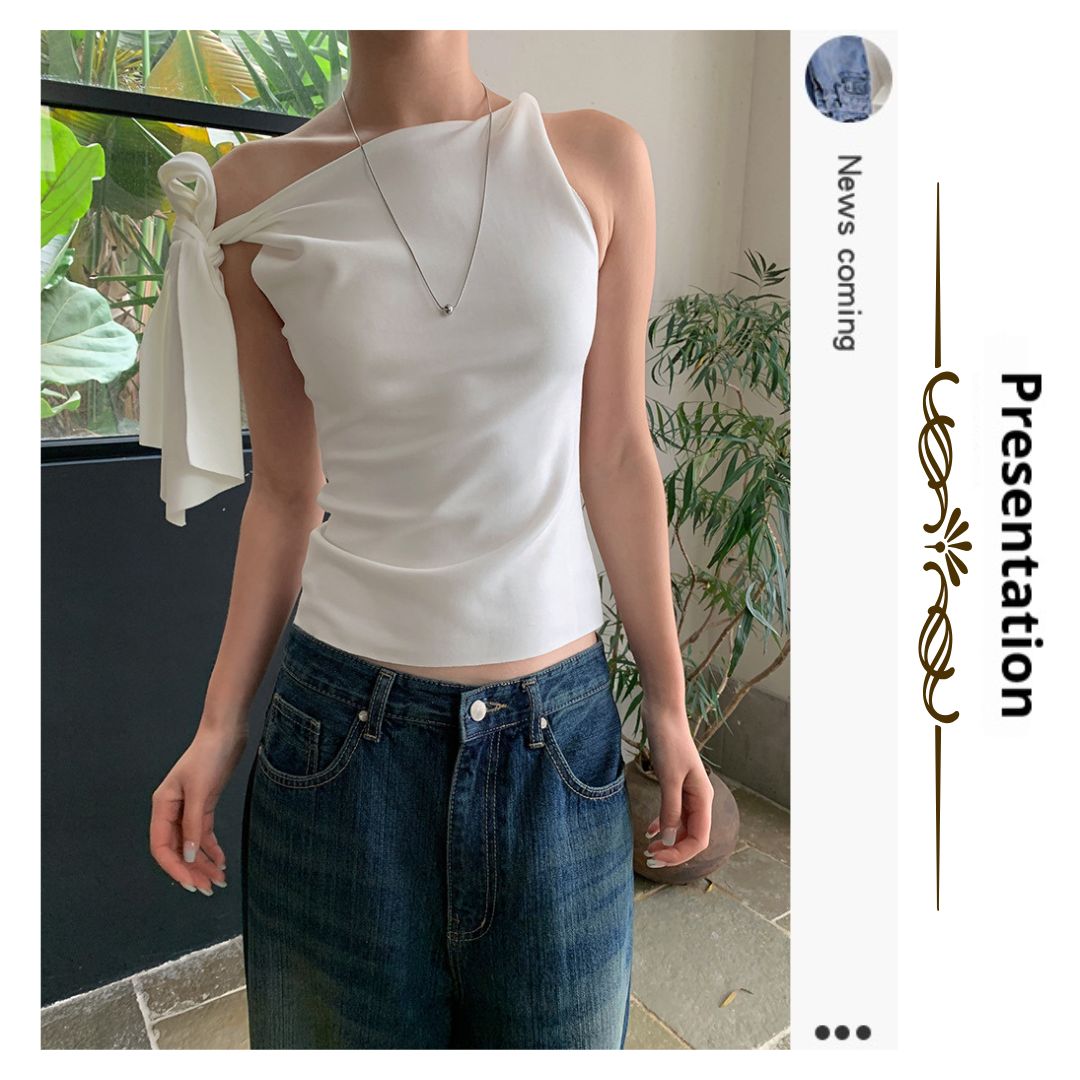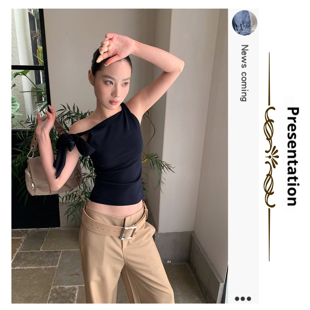 不規則綁帶斜肩上衣