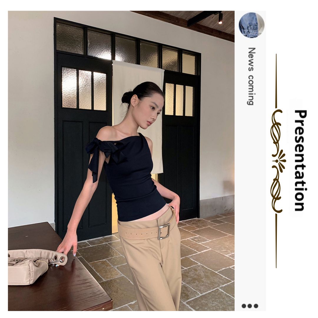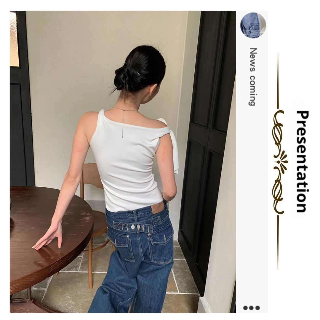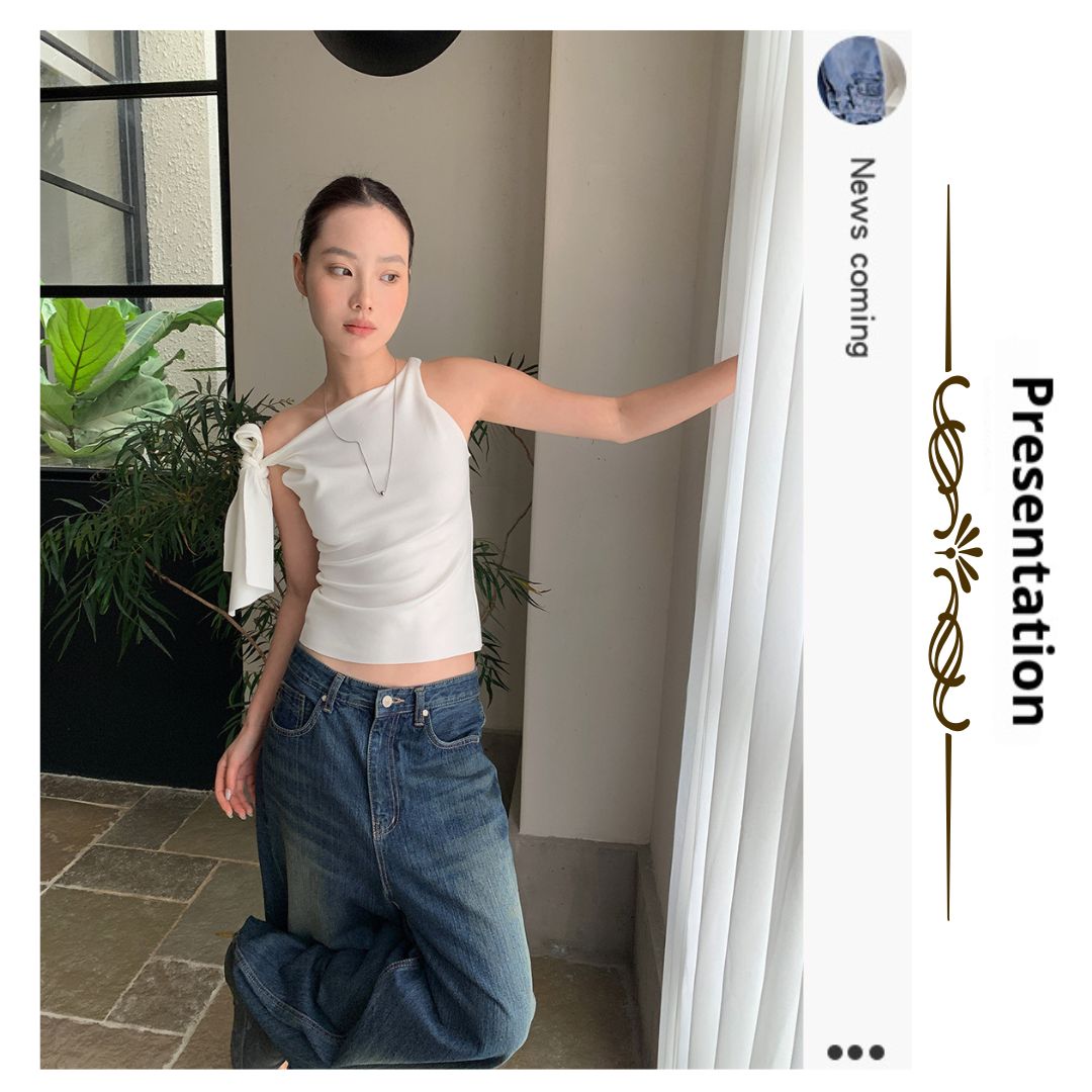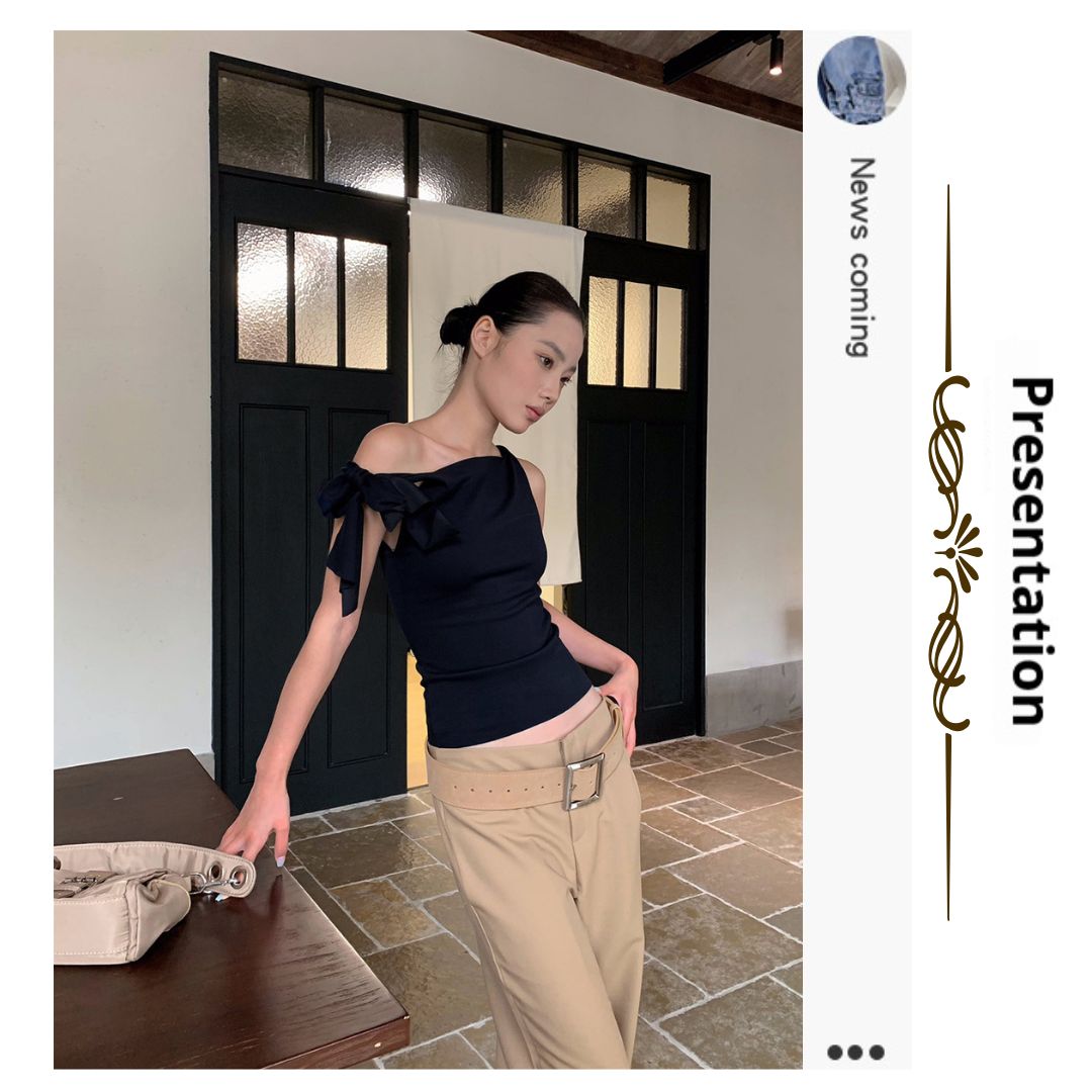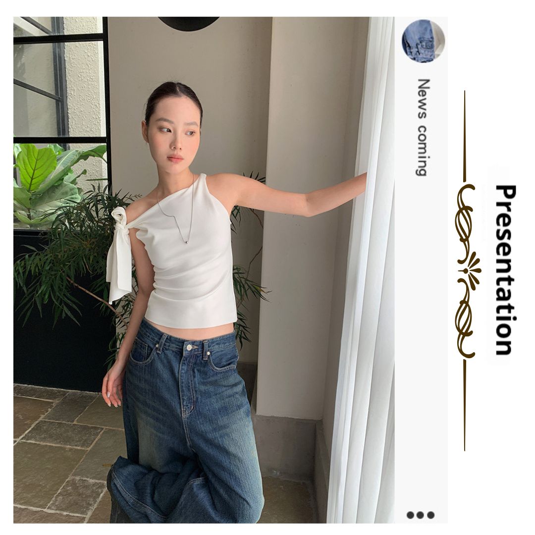不規則綁帶斜肩上衣