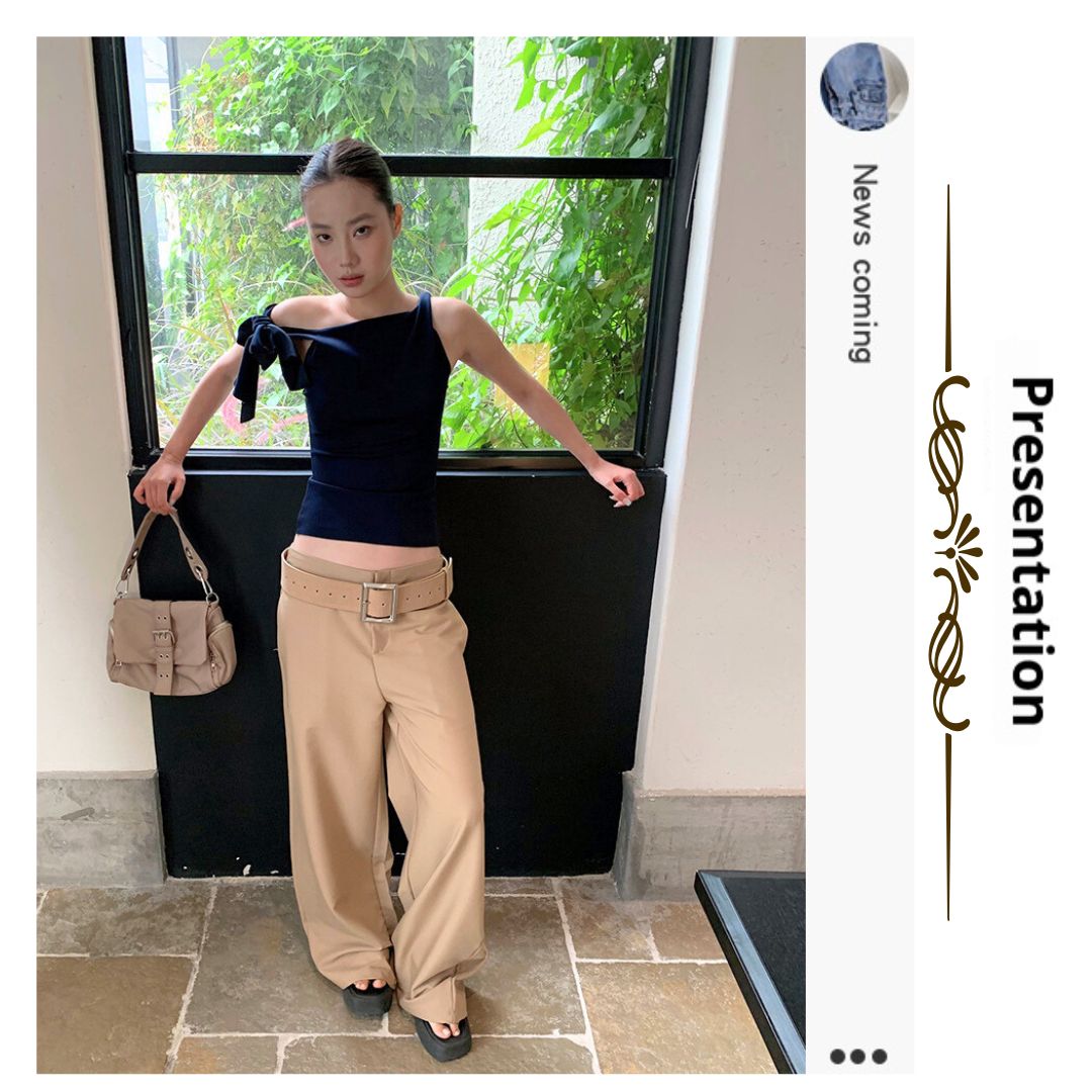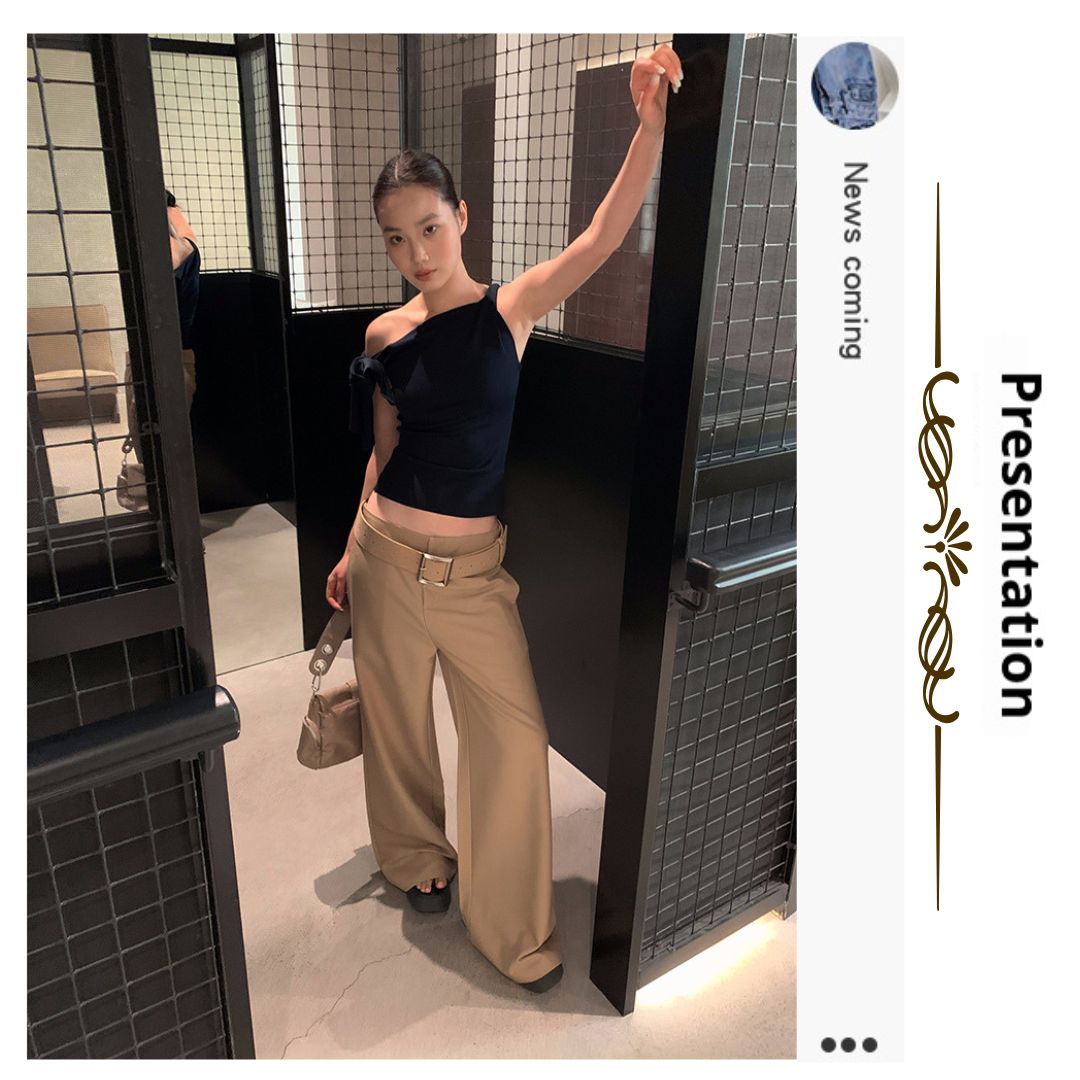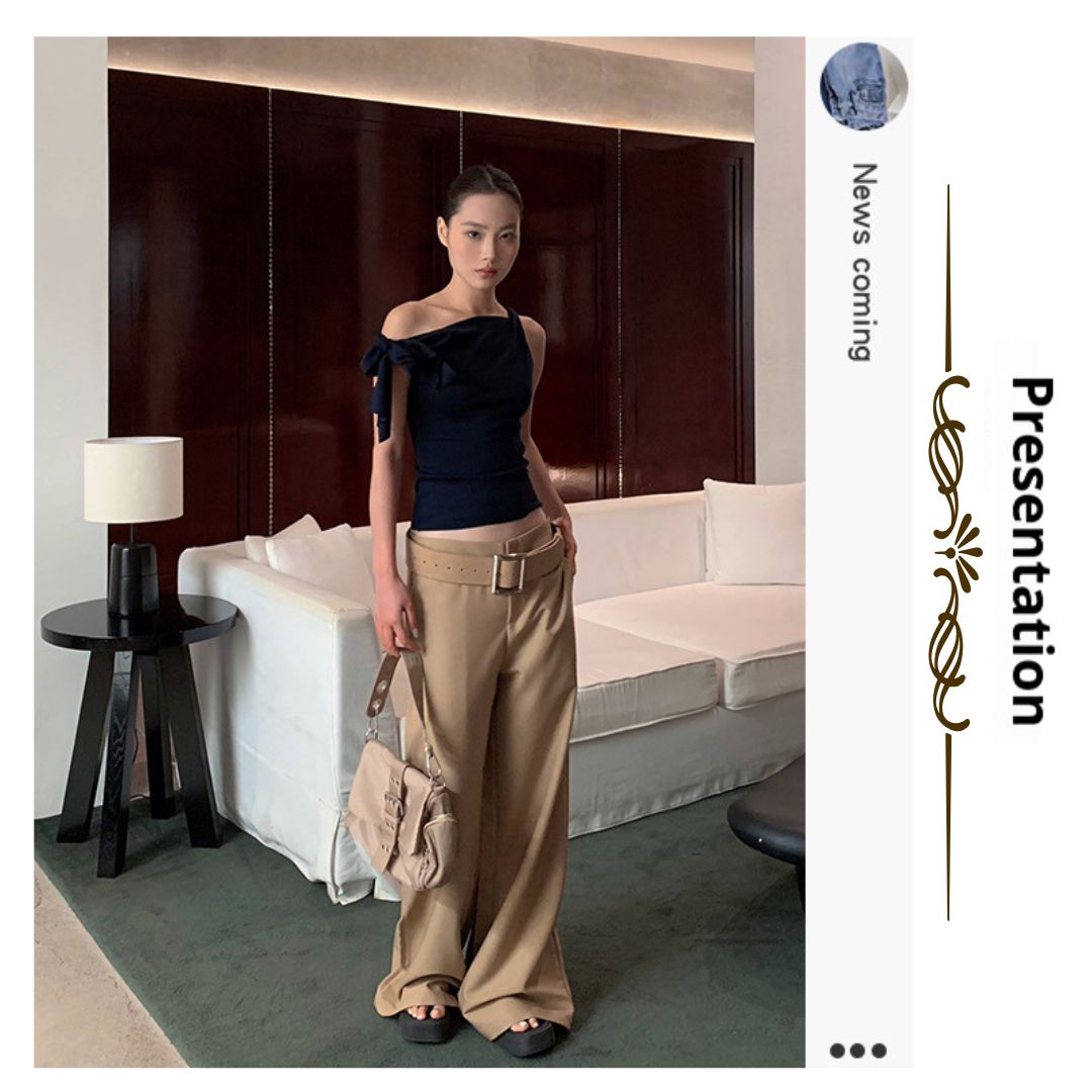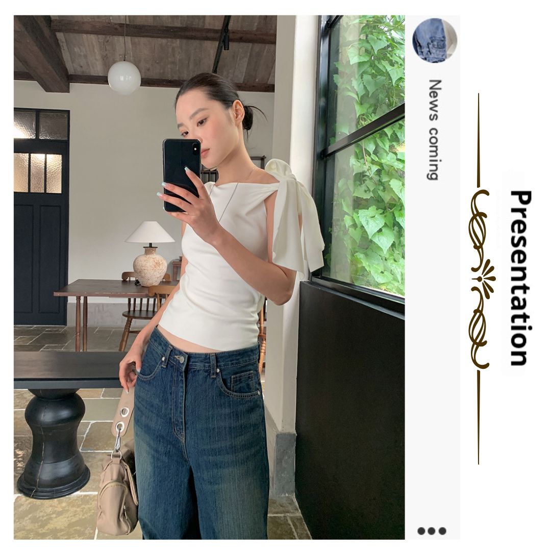不規則綁帶斜肩上衣