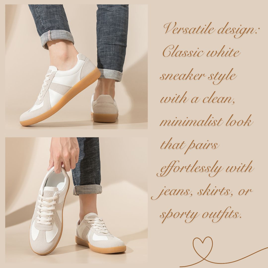 · 👟百搭設計:經典白色運動鞋風格,外觀簡潔,可輕鬆搭配牛仔褲、裙子或運動服。