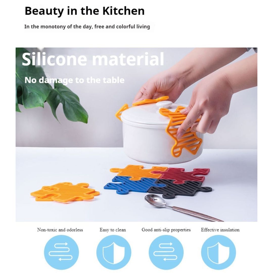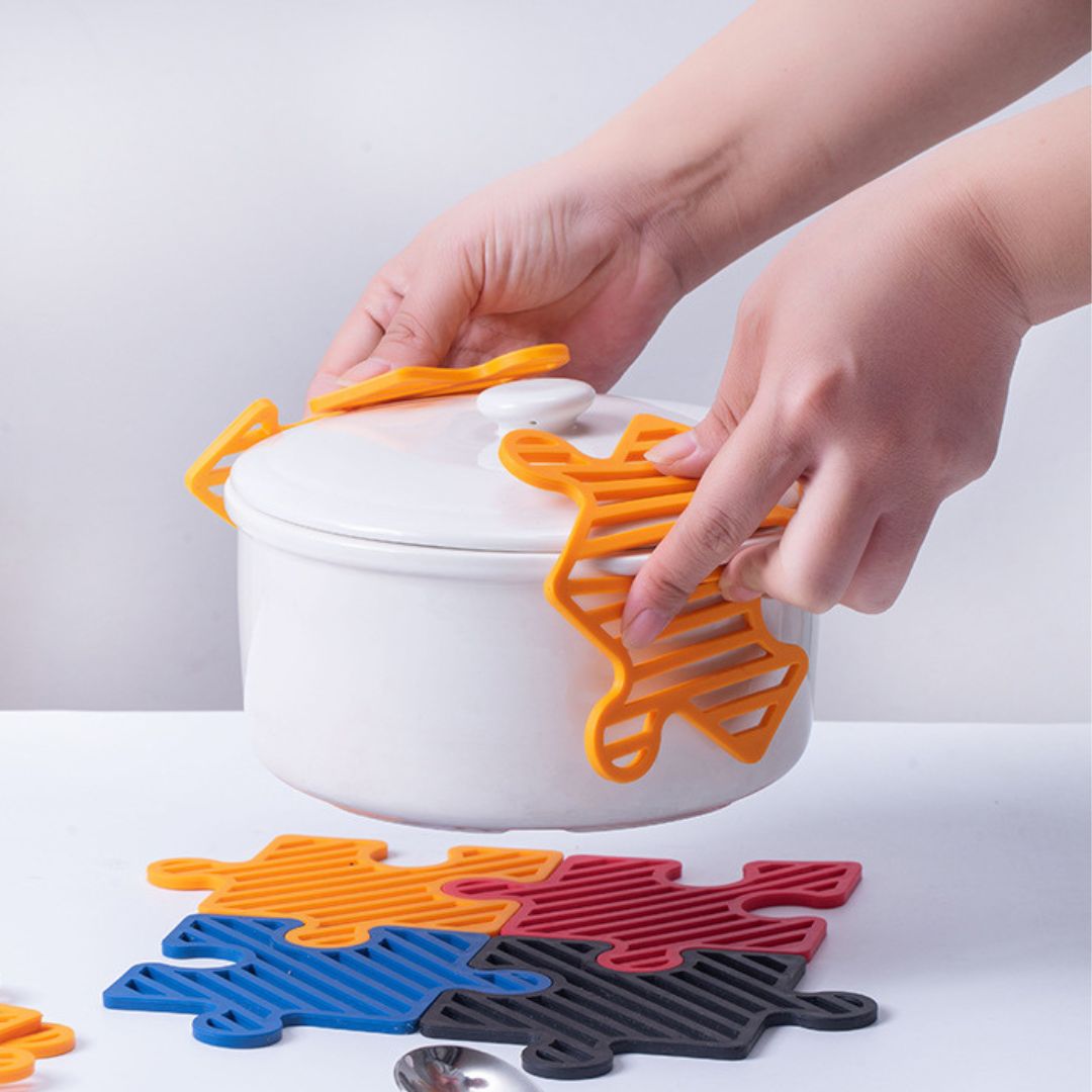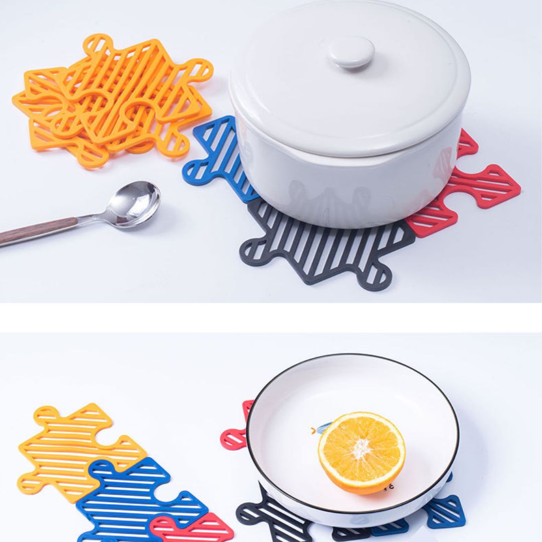 創意拼圖矽膠杯墊4個裝