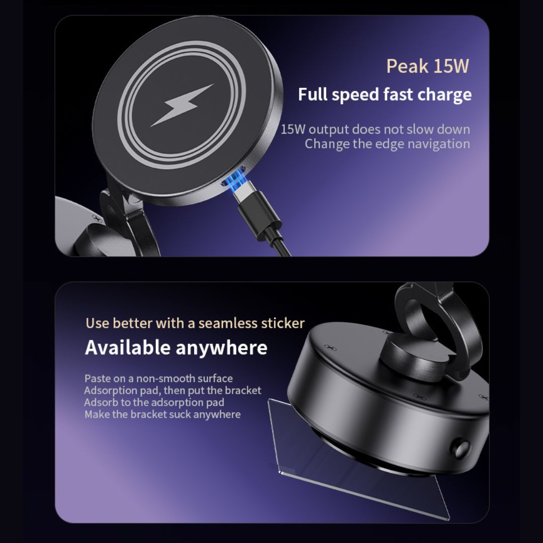 D1真空折疊式磁吸手機支架 (附無線充電&自動吸盤功能)