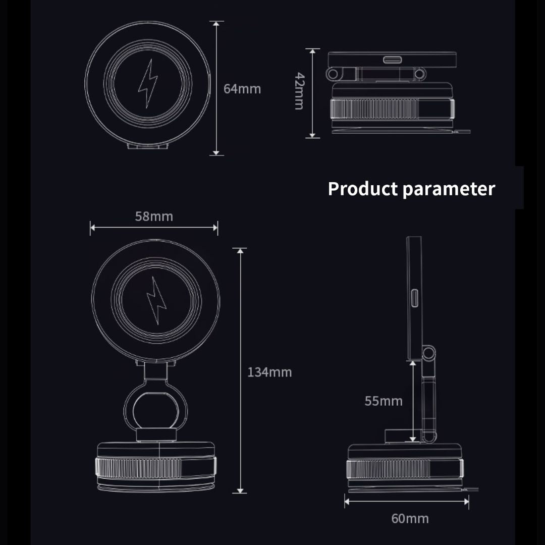 D1W真空折疊式磁吸手機支架 (附無線充電功能)