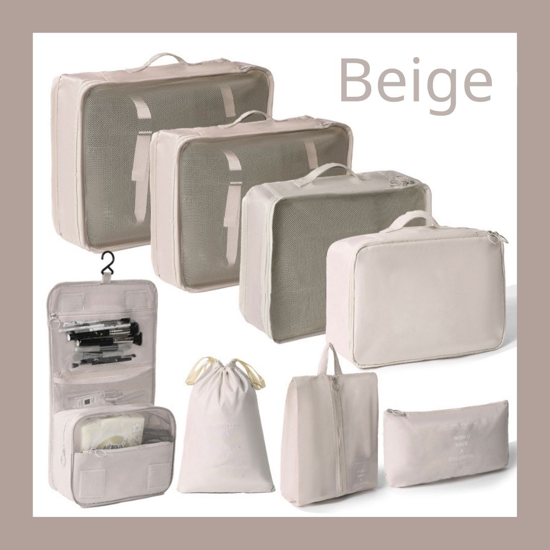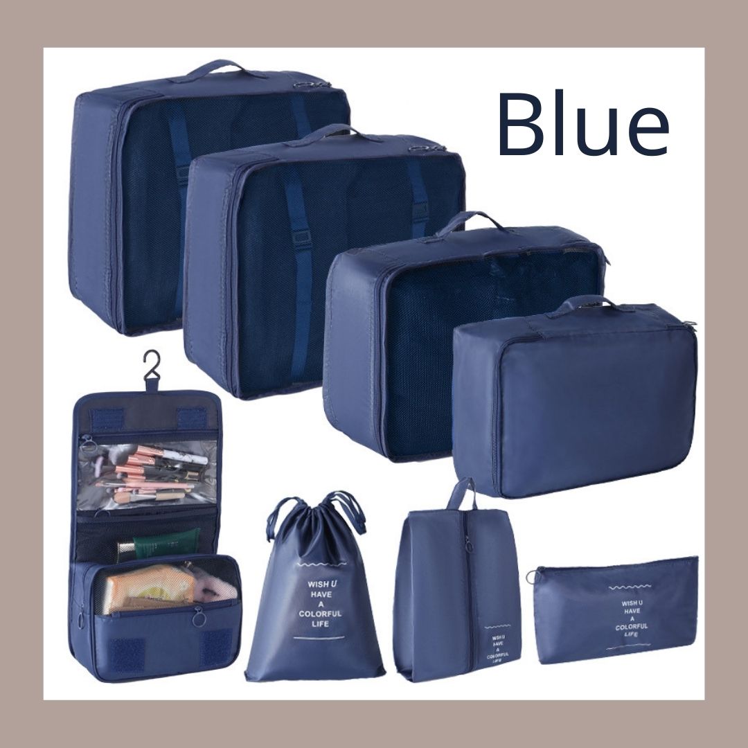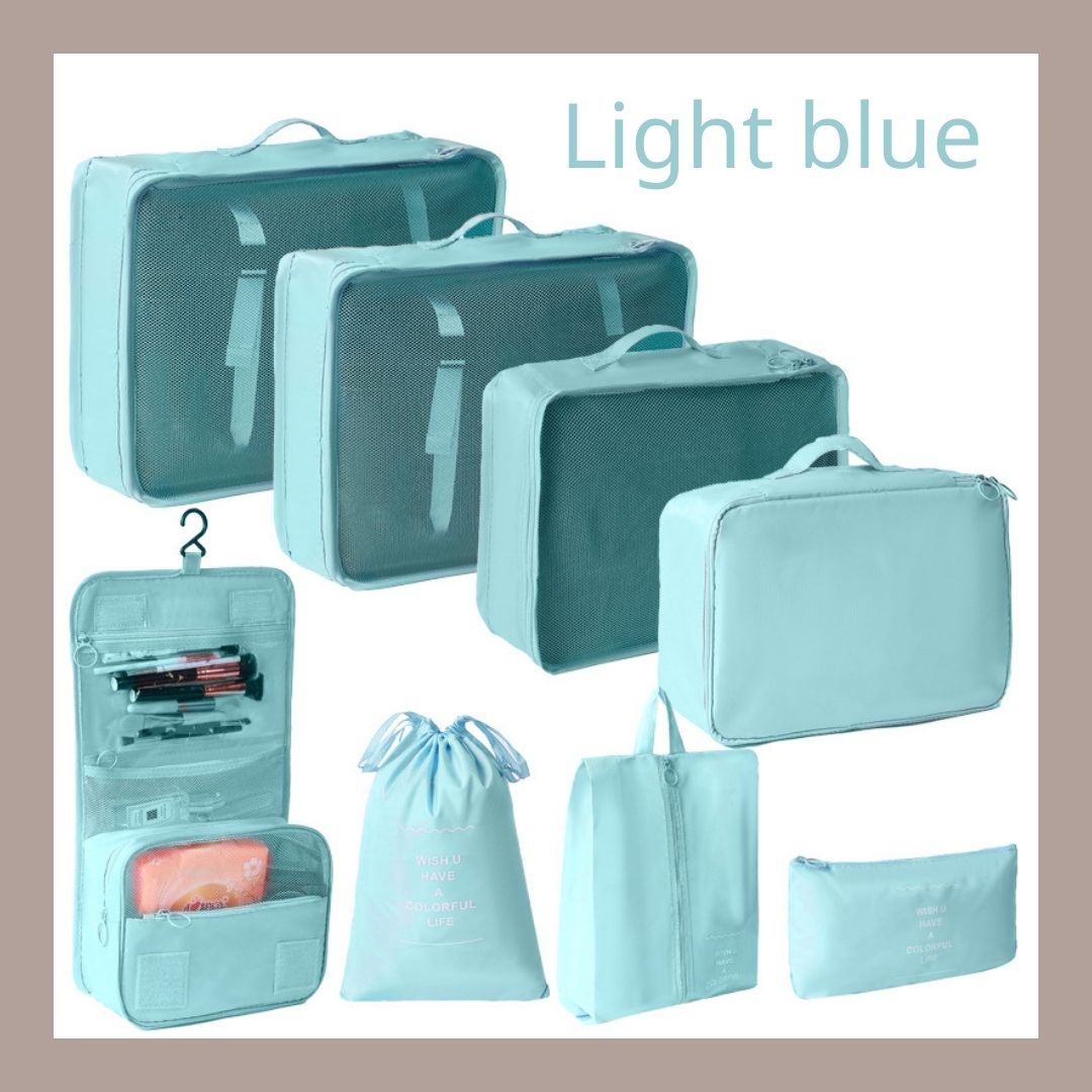 - 🌈套裝:此套裝提供八個包裝袋、旅行鞋袋、盥洗包,有超過 6 種不同的顏色可供選擇,以配合您的風格。