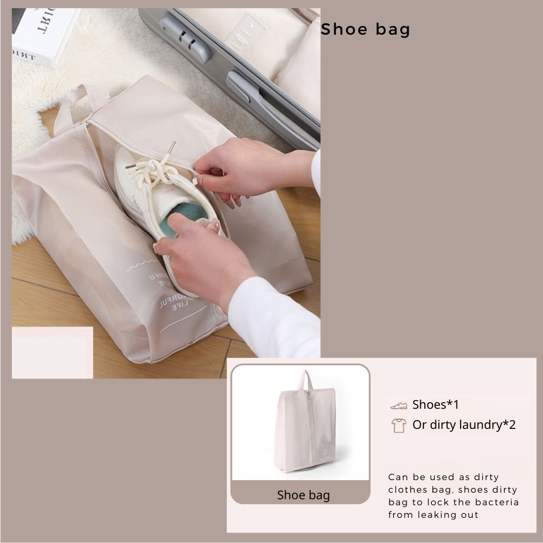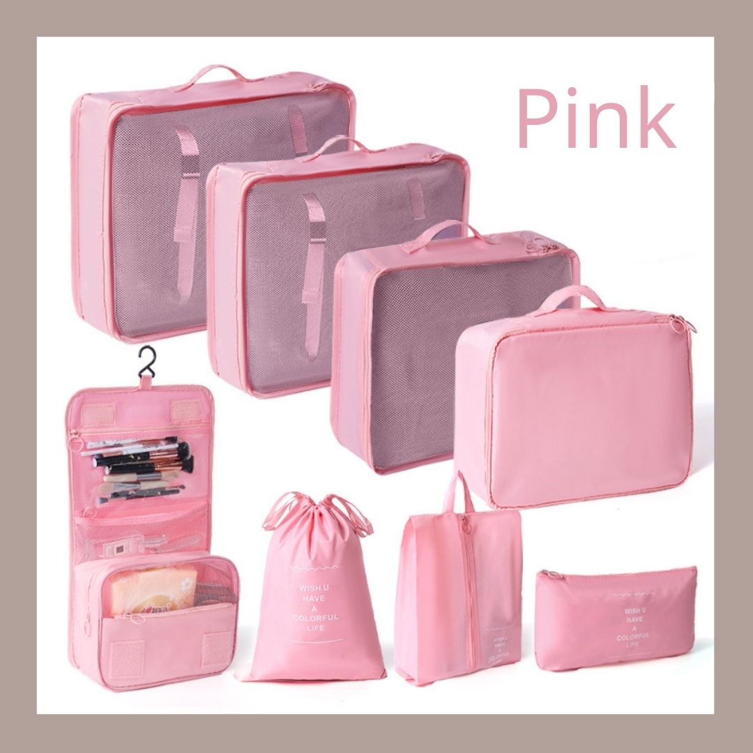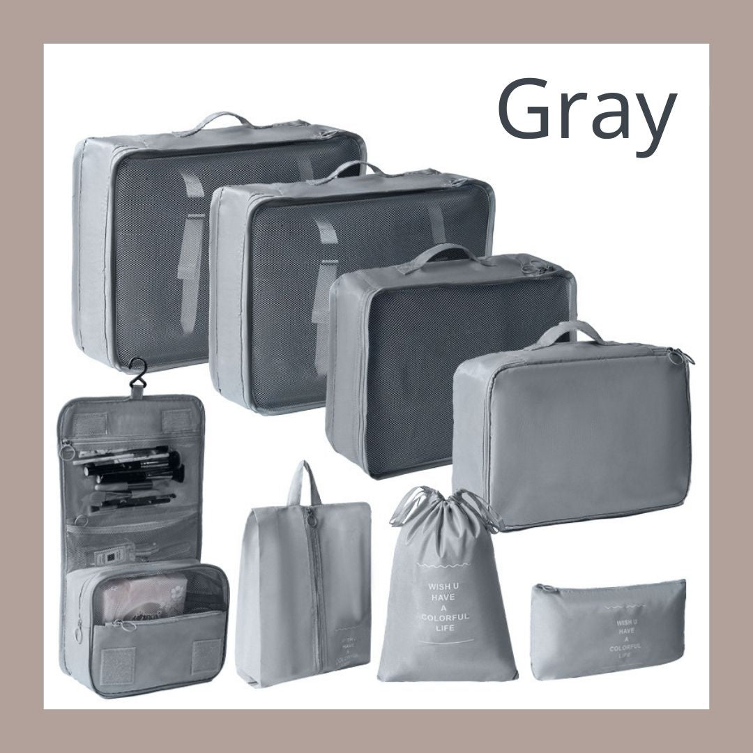 - 🌈套裝:此套裝提供八個包裝袋、旅行鞋袋、盥洗包,有超過 6 種不同的顏色可供選擇,以配合您的風格。