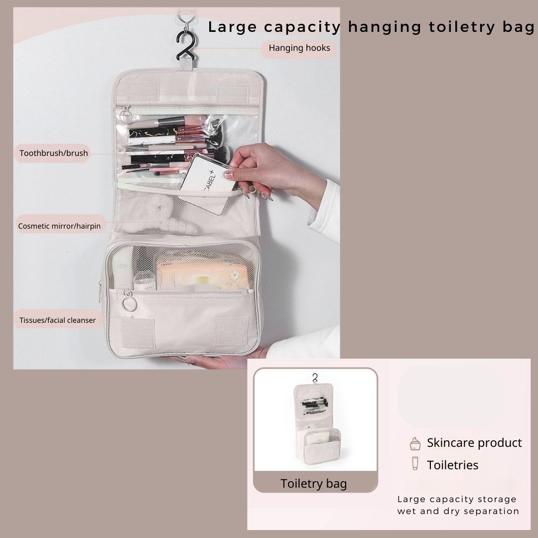 - 🚿洗漱包旅行包:這款防水化妝化妝包旅行收納袋包括一個掛鉤,有中號和大號可供選擇。它非常適合存放洗髮精、全尺寸容器和其他洗漱用品。