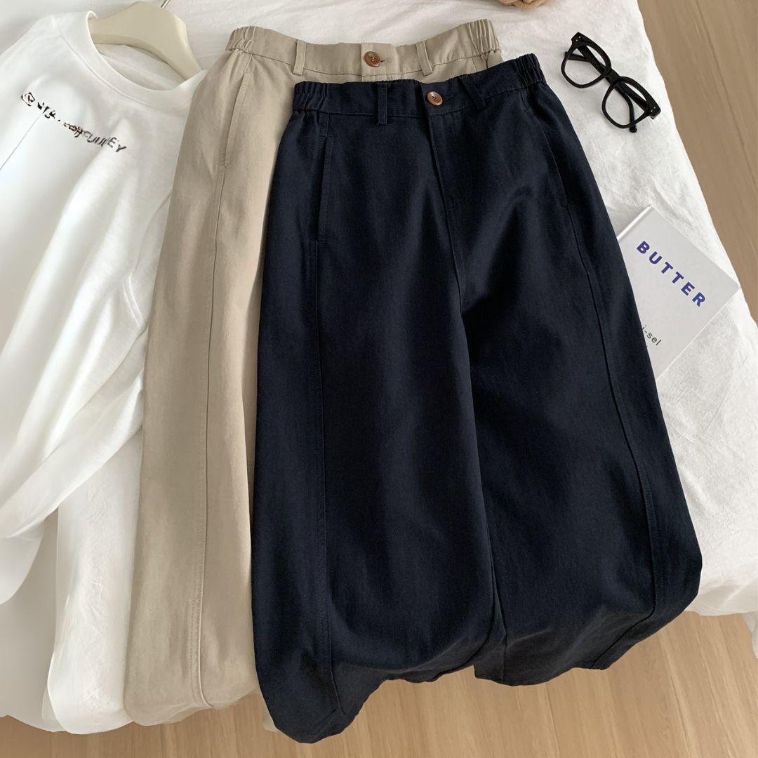 日系復古直筒休閒九分褲