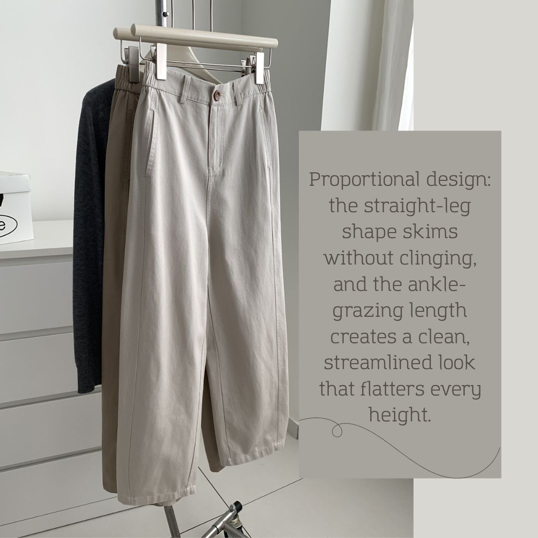 👍褲型比例:直筒不貼腿,九分露踝設計在視覺上更俐落,適合各種身高。