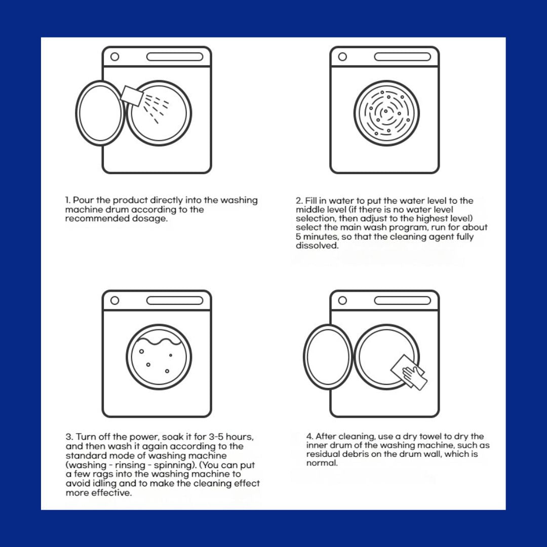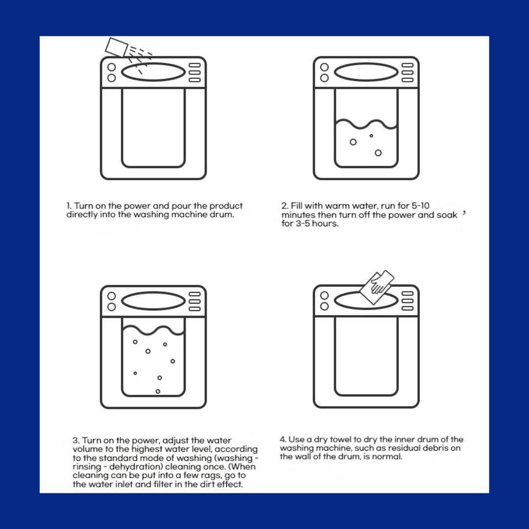- ✨深層清潔:有效清潔滾筒、管道和過濾器,去除污垢、黴菌和水垢堆積,消除黴菌,保持機器清新。