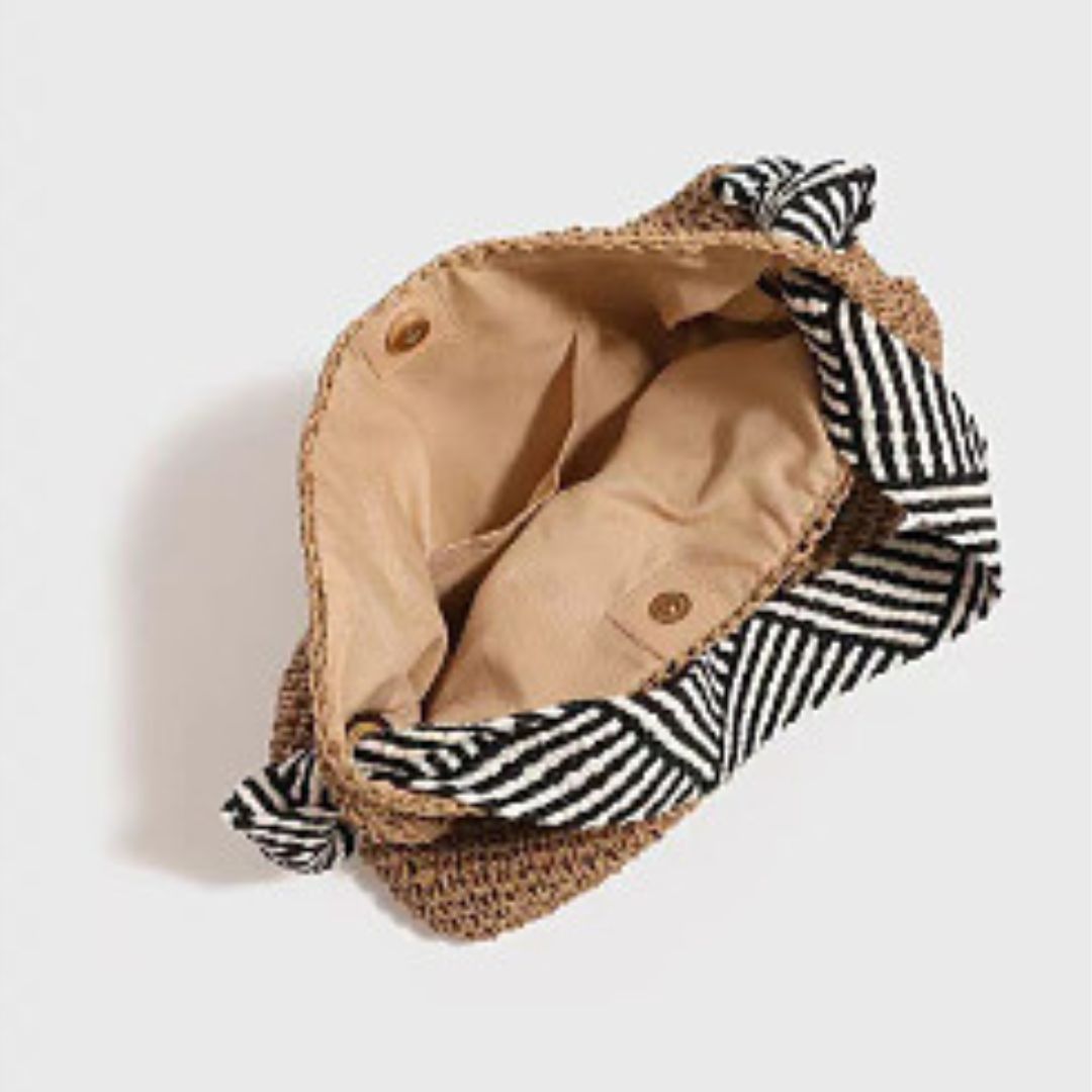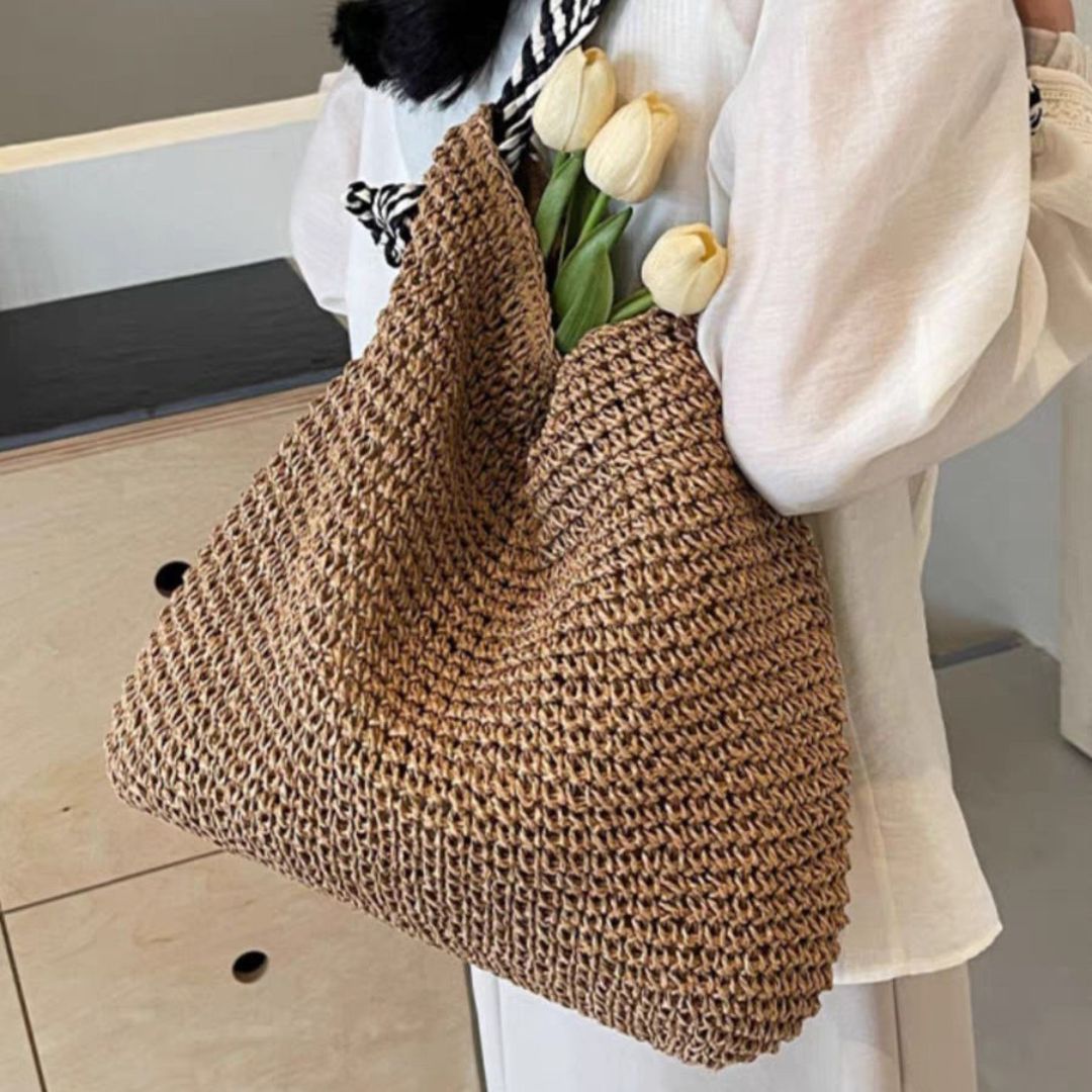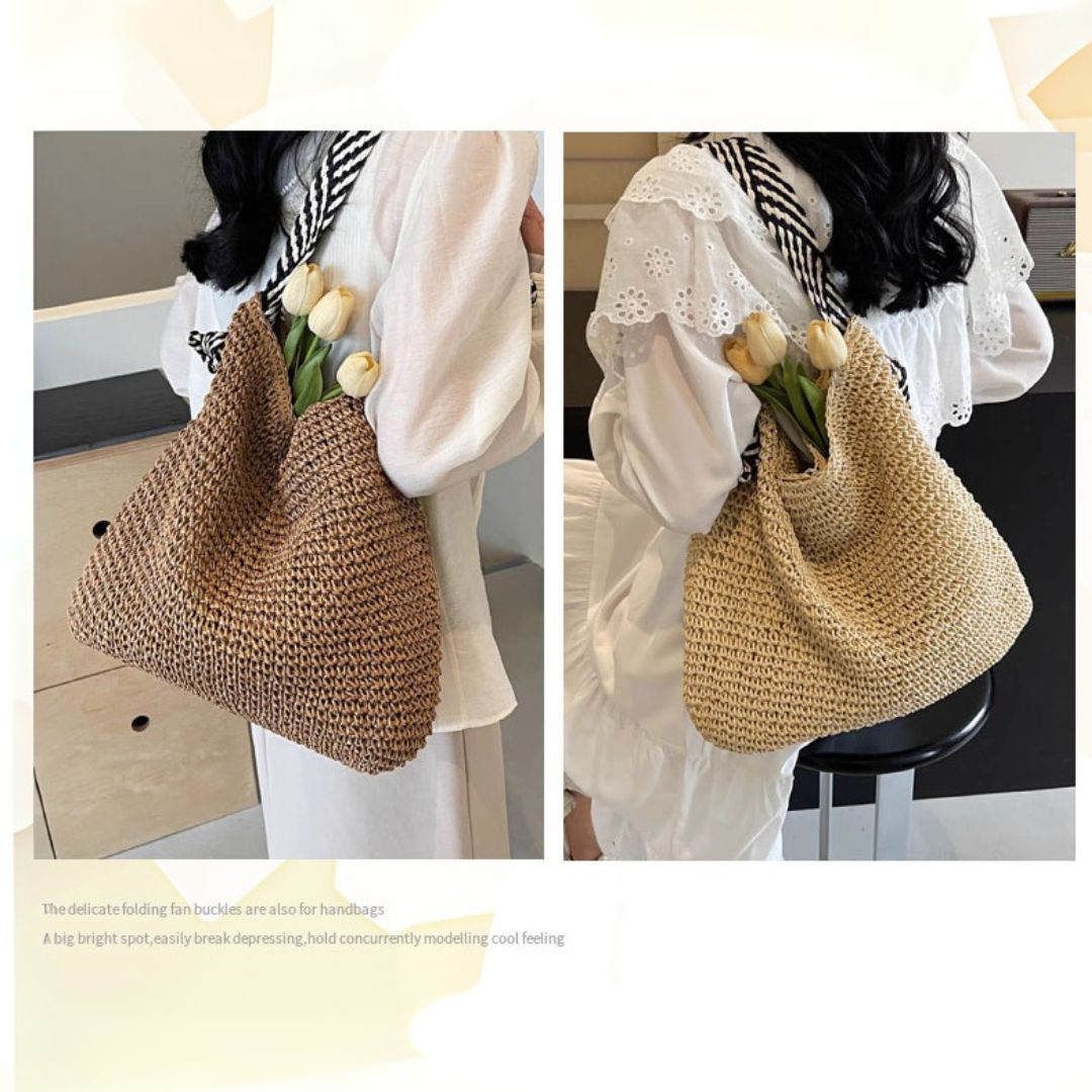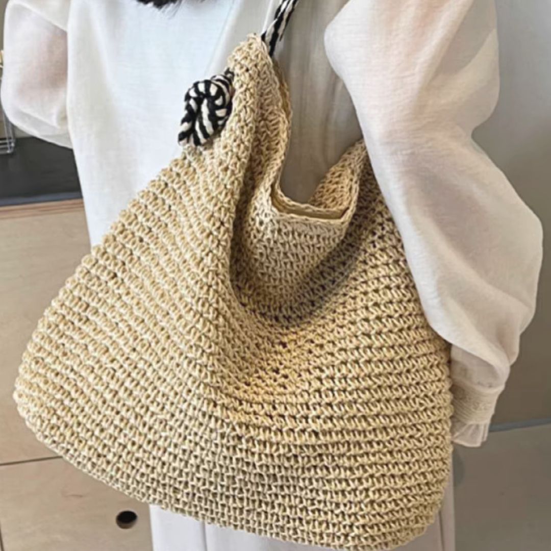 🌟 打造時尚休閒風格! 這款時尚單肩包結合了草編的質樸魅力與桃皮絨的柔軟觸感,是獨特又時髦的配件。