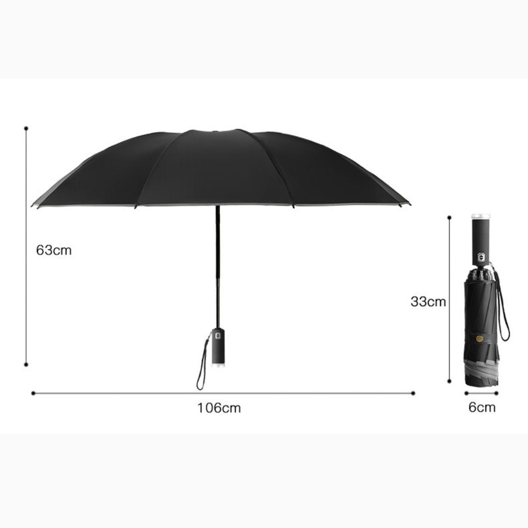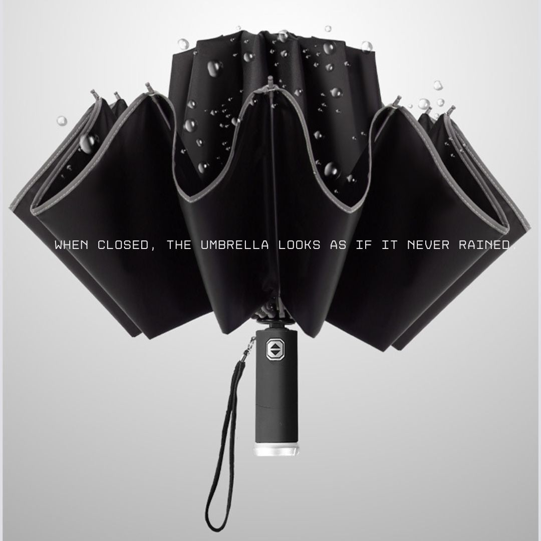 - ↕️反向自動開合:採用創新的反向折疊機制,只需一鍵操作即可自動開合。這種設計可防止雨傘收起時水滴到您身上或周圍環境中。