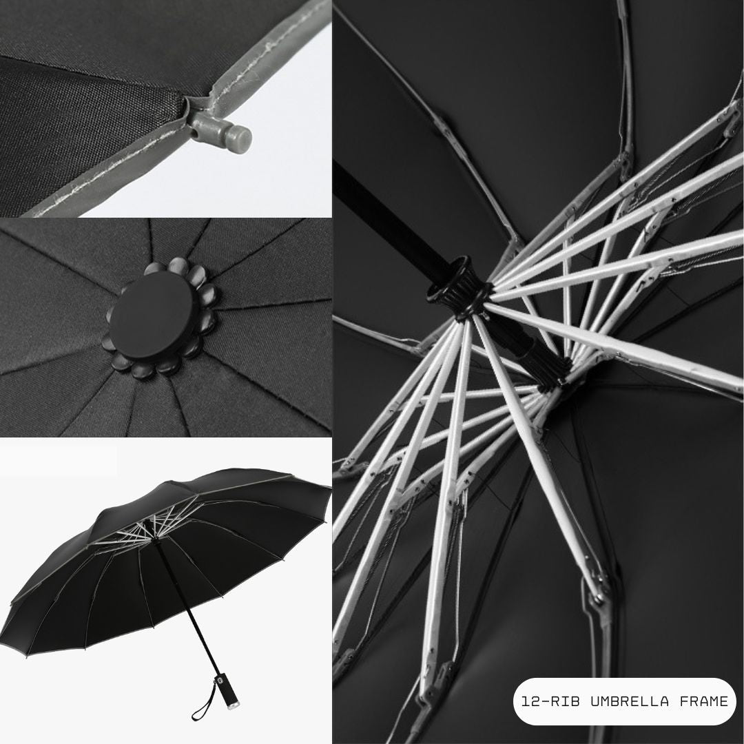 - 1️⃣2️⃣12支傘骨結構:這款雨傘採用堅固的12支傘骨設計,確保卓越的抗風性能。這種加固結構確保雨傘即使在惡劣的天氣條件下也能保持穩定。