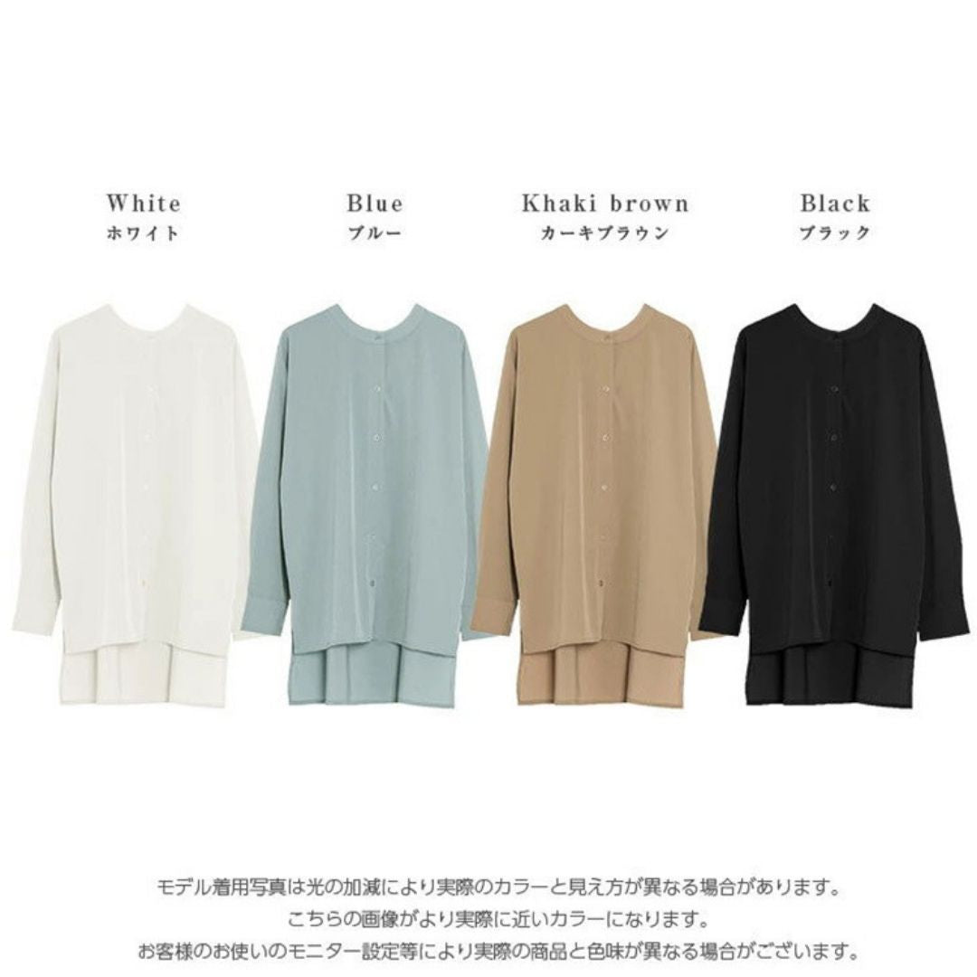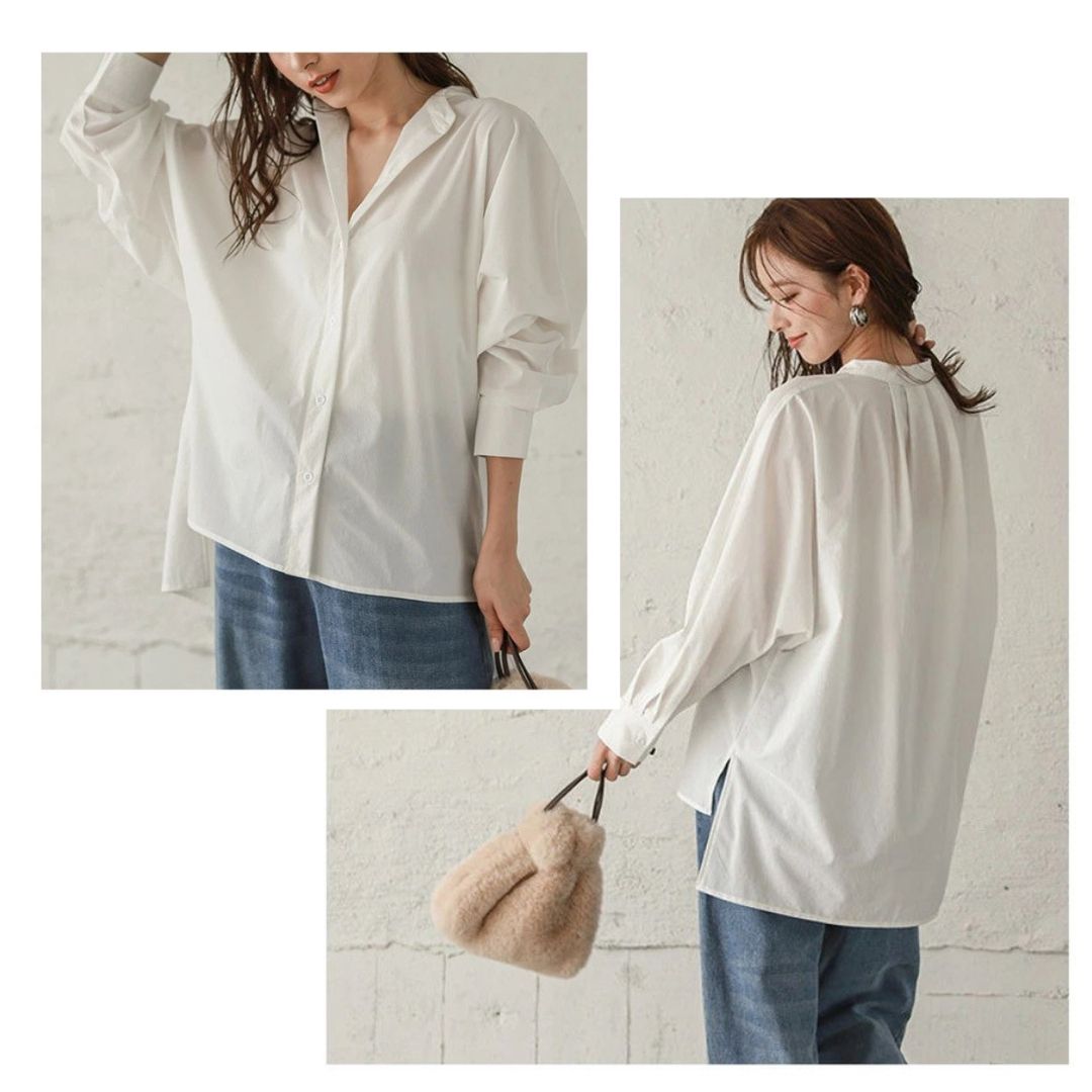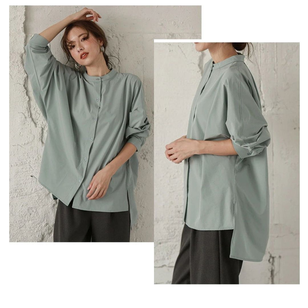 蝙蝠袖寬鬆立領開叉襯衣