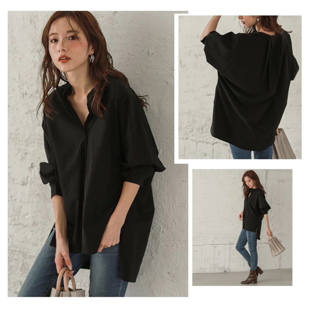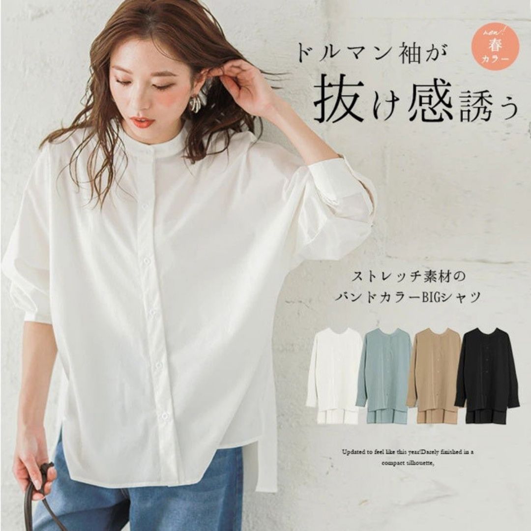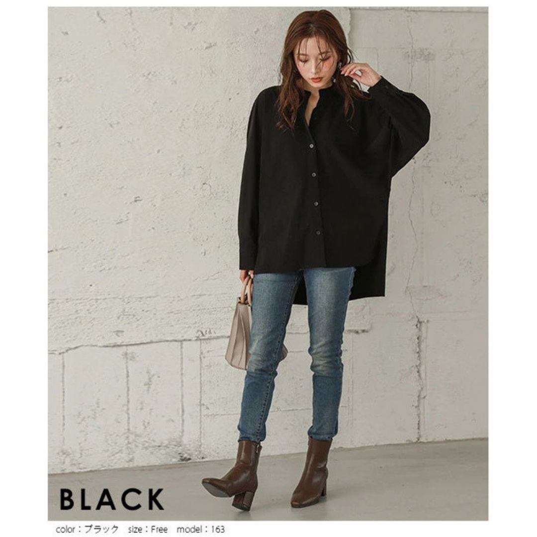 蝙蝠袖寬鬆立領開叉襯衣