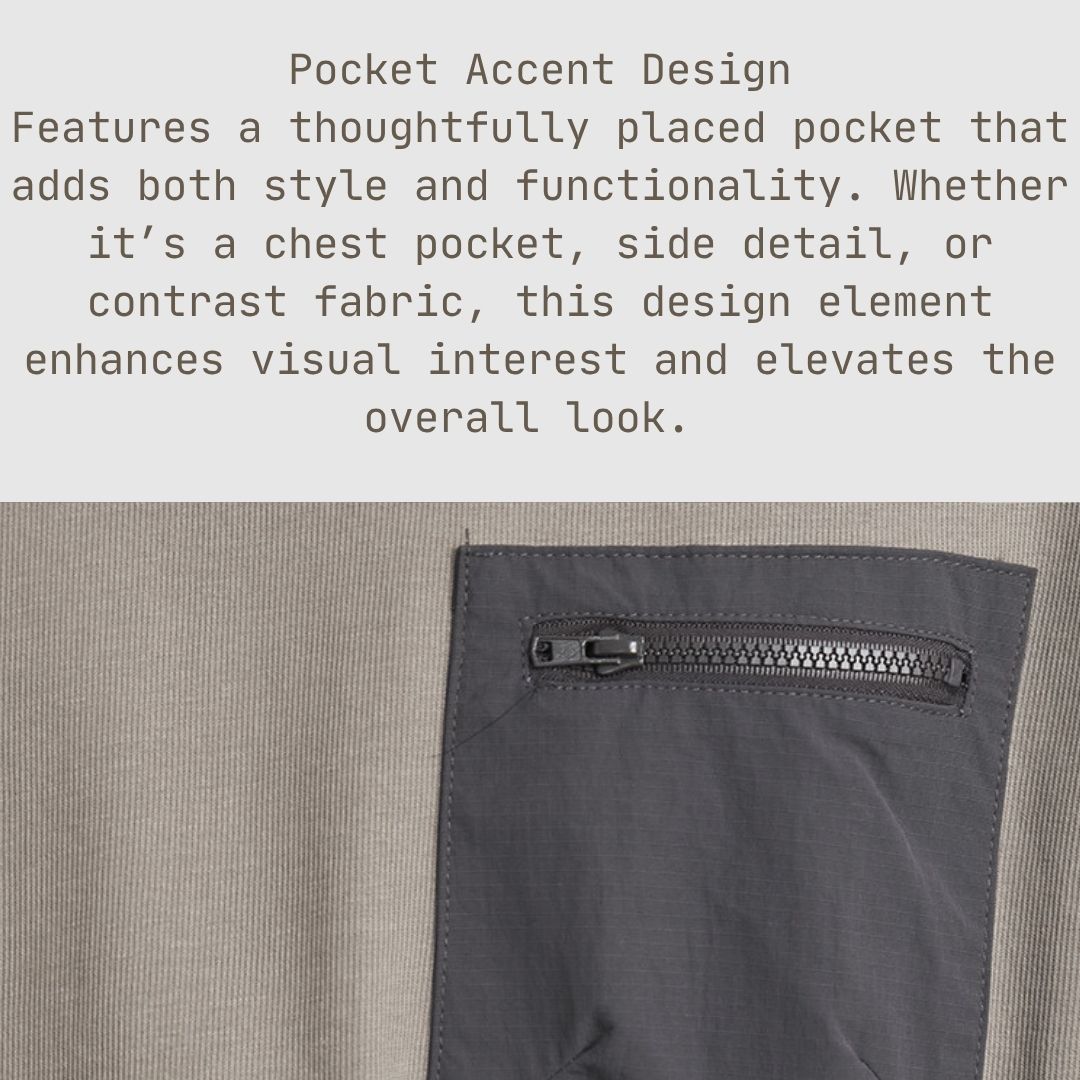 - 🔲胸袋:增加了一點功能性和視覺趣味,非常適合放置小物品或營造悠閒的氛圍 。