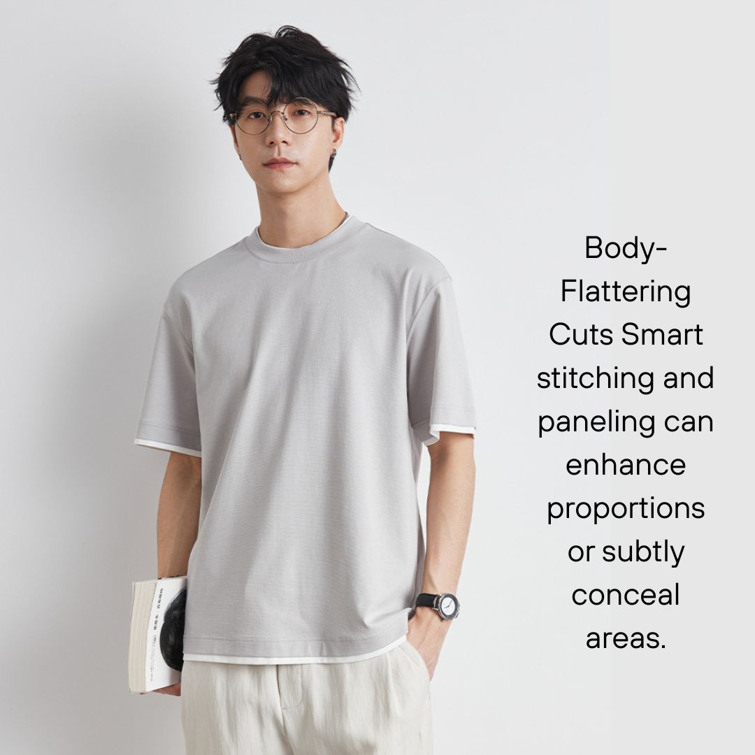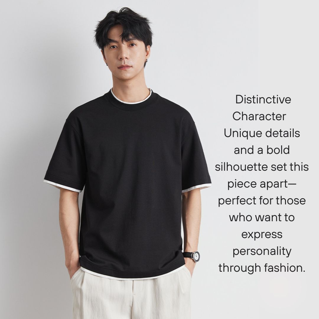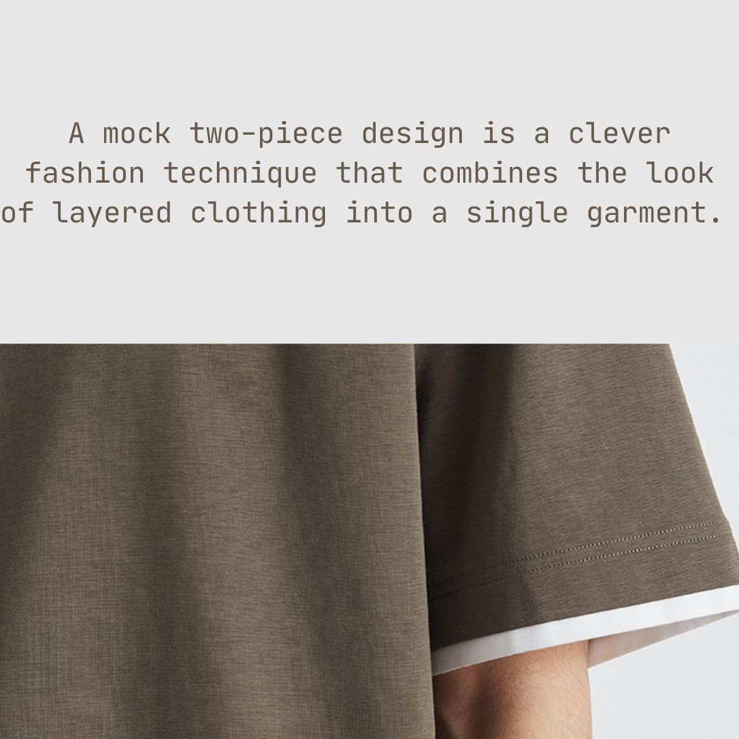 - 2️⃣仿兩件套裝設計, 打造層次感:仿兩件式結構,仿T恤穿在短袖上衣內的效果。營造出豐富的層次感,活力時尚。