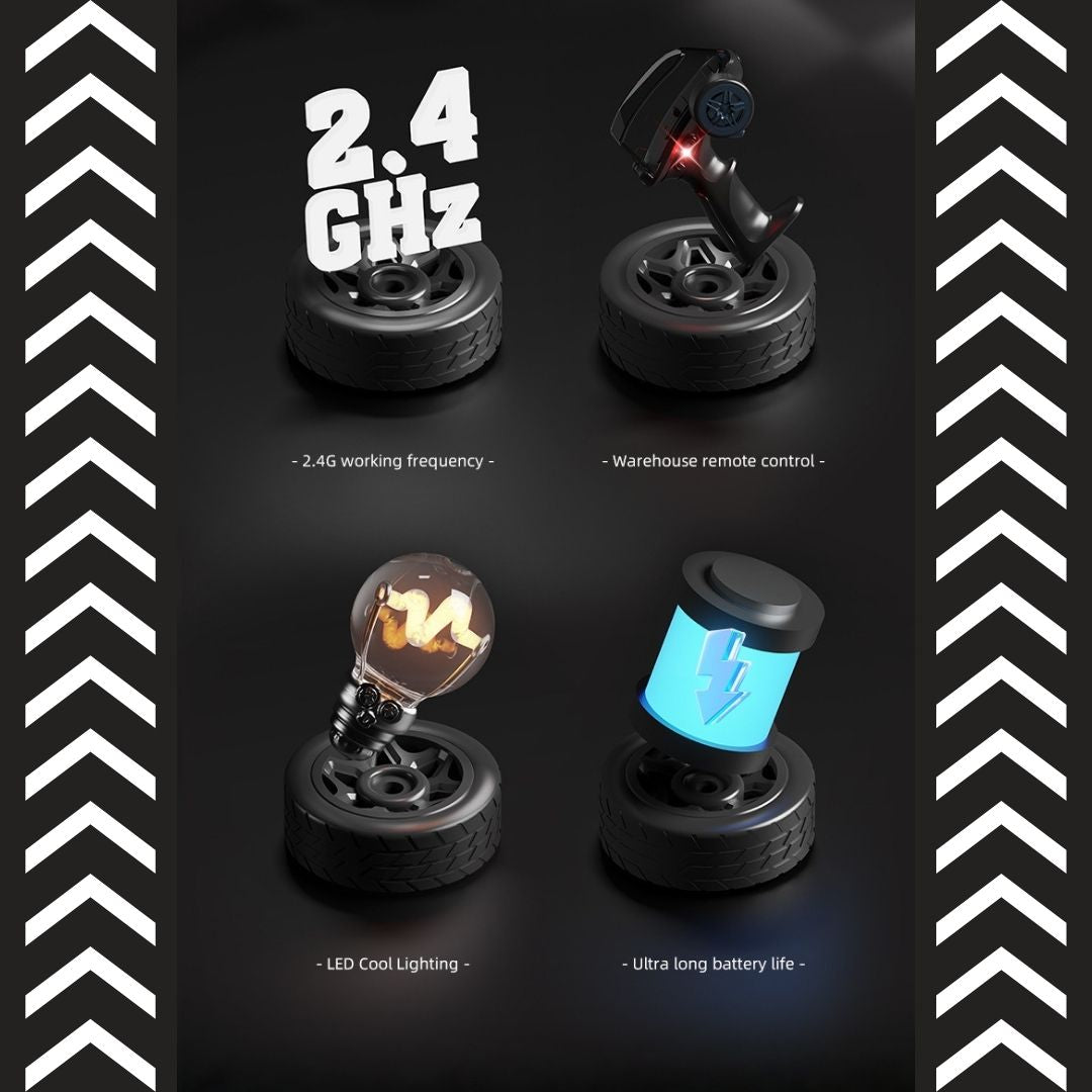 👍漂移功能:配備專業漂移輪胎或麥克納姆輪,可進行側滑、甩尾等特技動作。
