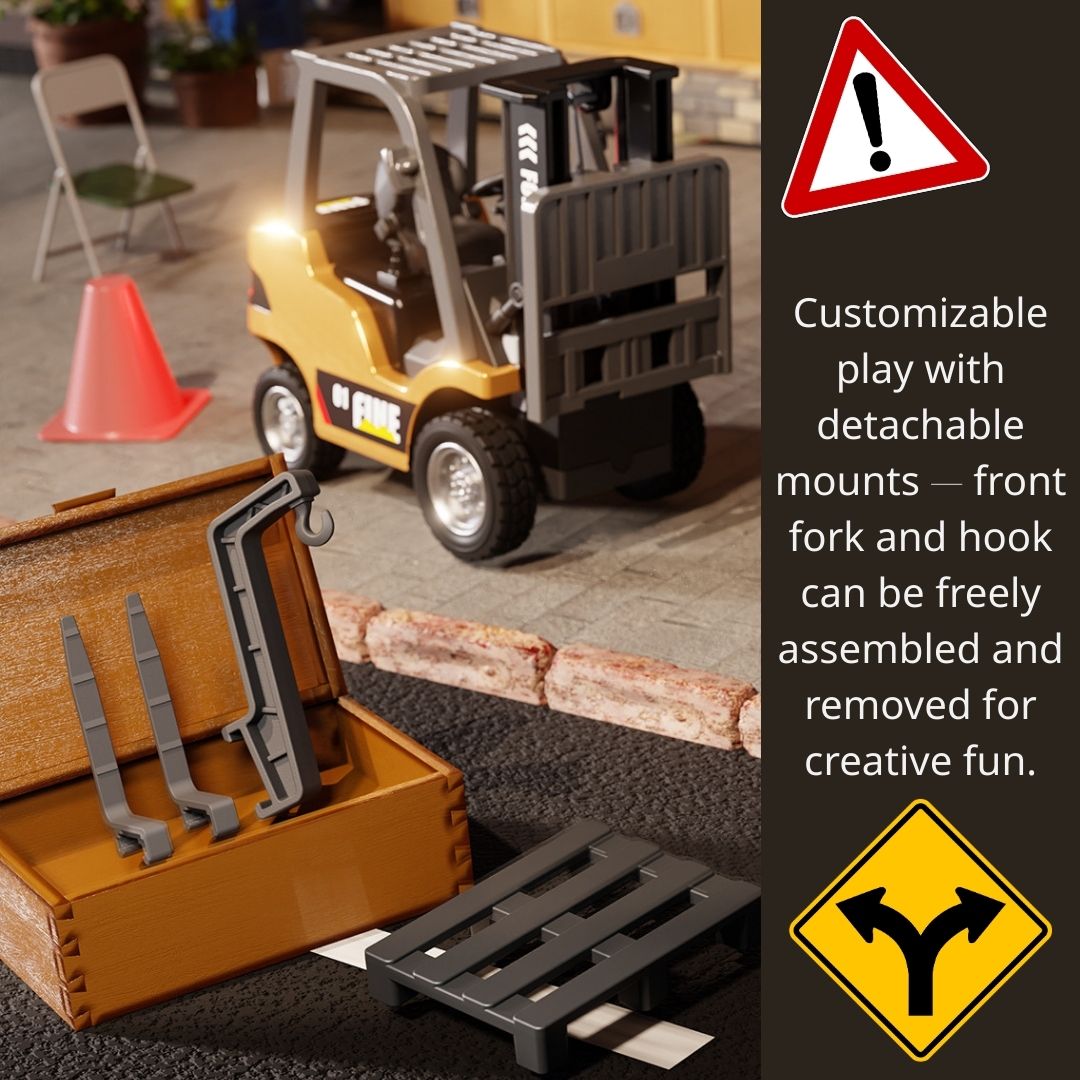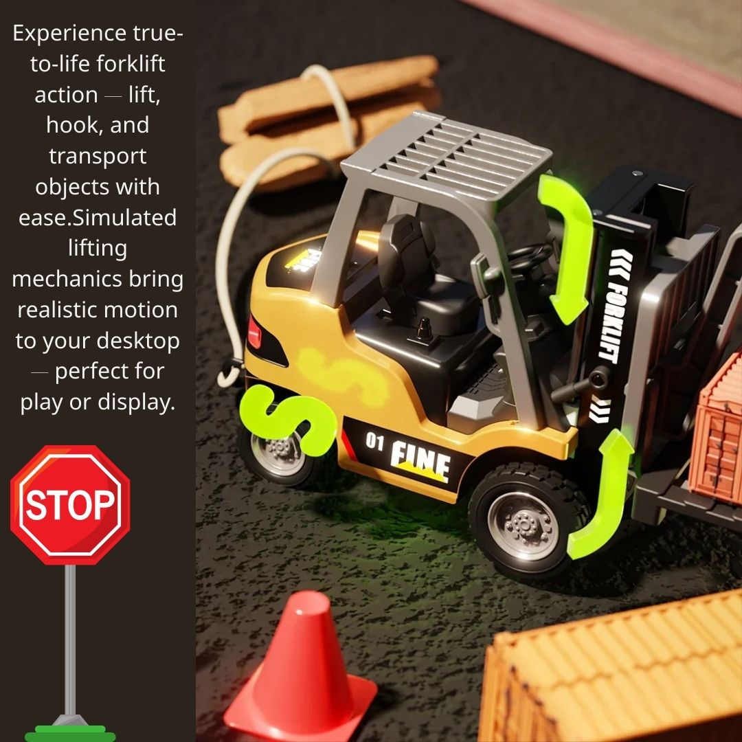- ↪️模擬工程功能:可以升降、前後移動以及向左或向右轉動真實還原堆高機工作狀態。