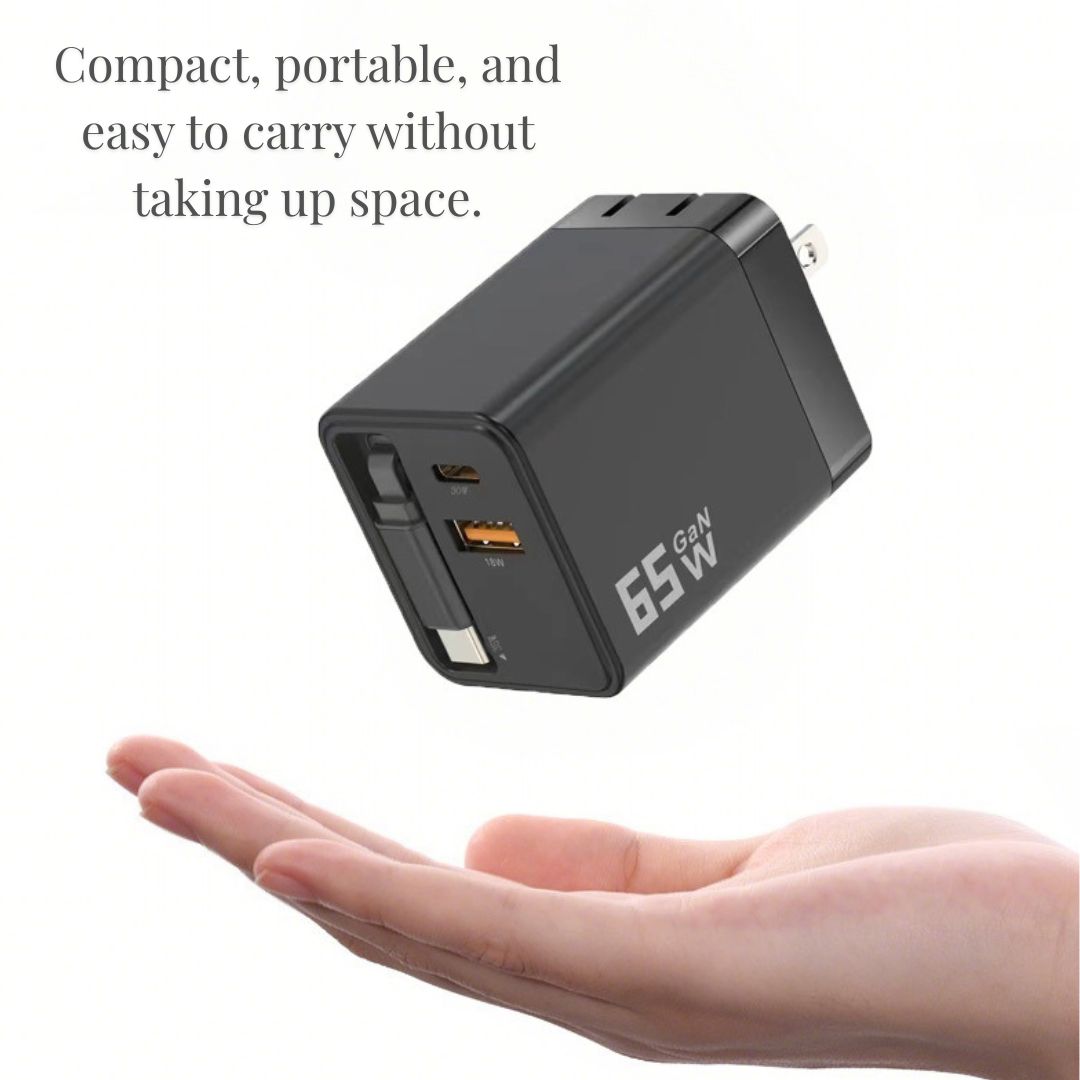 · 📌小巧便攜:比傳統的 65W 充電器小近 40%,掌心大小,可輕鬆放入口袋或背包中。