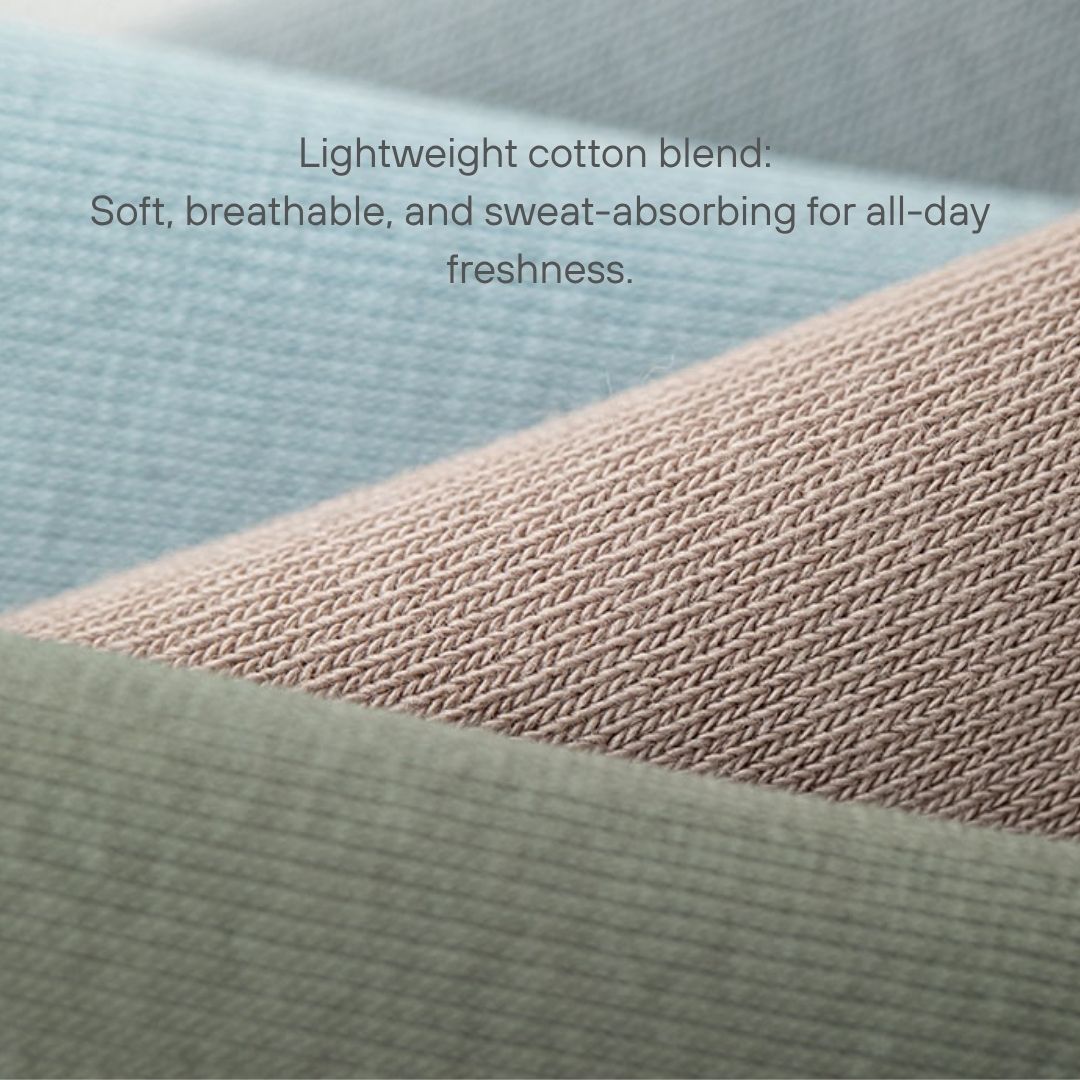 - 🌿輕質棉混紡:柔軟、透氣、吸汗,讓您一整天保持清新。