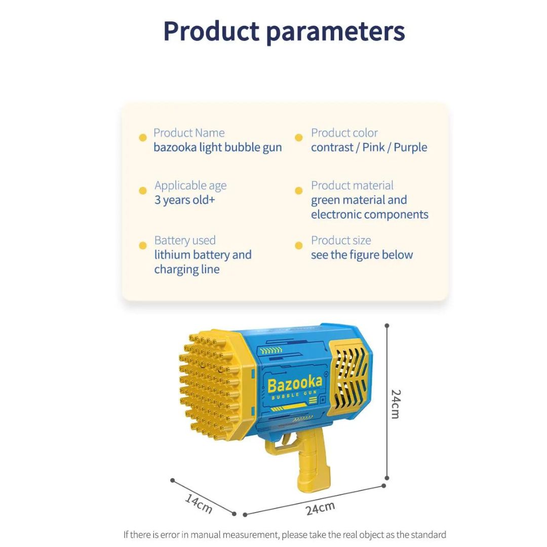 多孔設計 🔫:69孔設計,能夠產生大量泡泡,讓孩子們玩得開心。