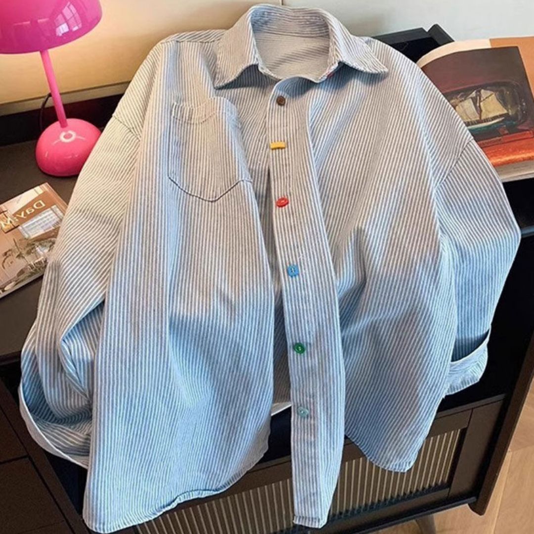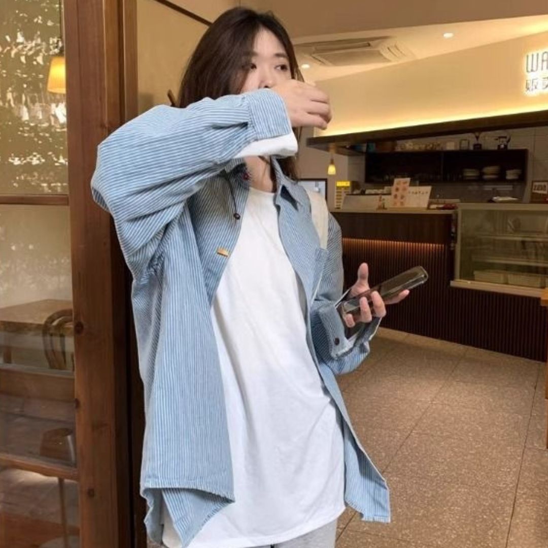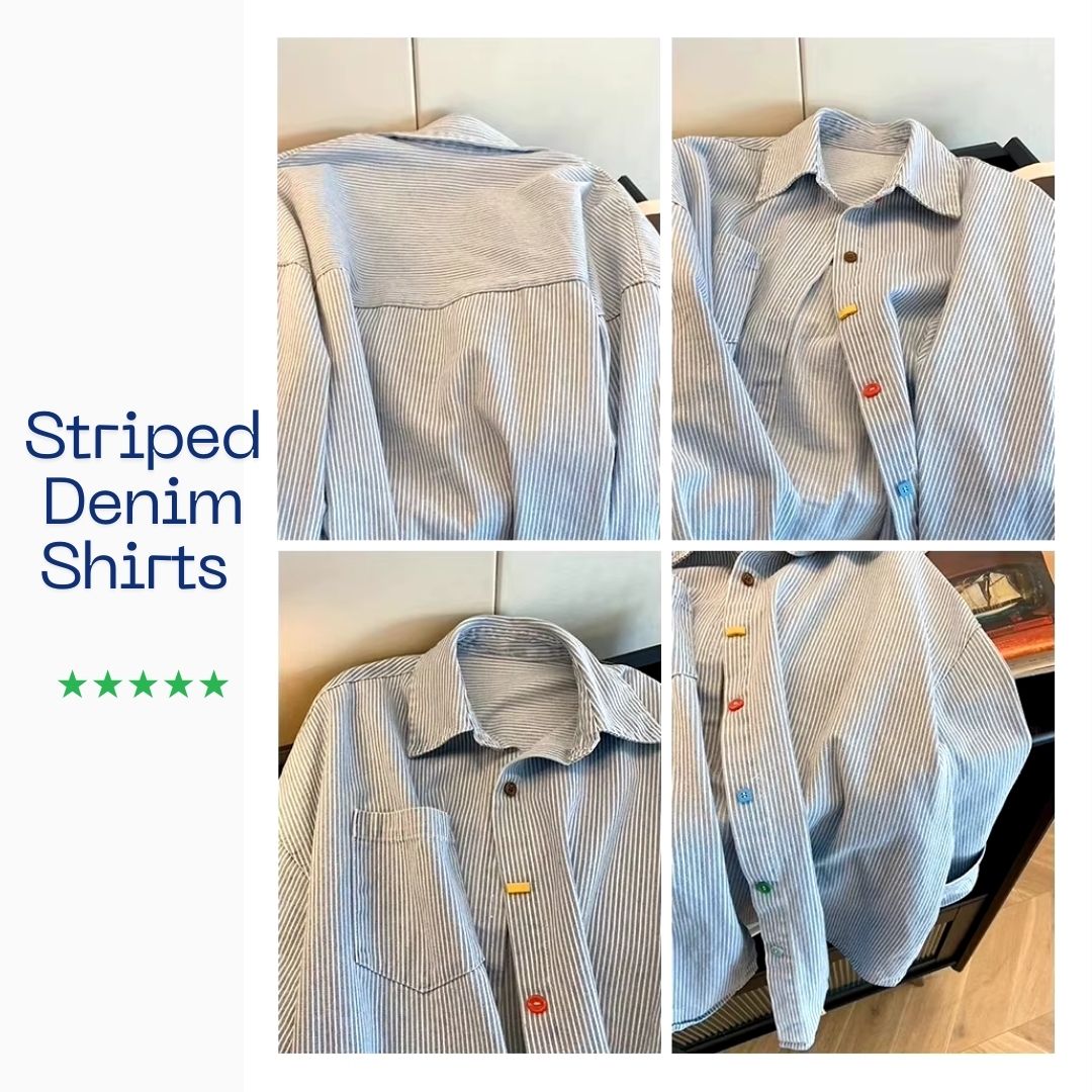 - ➖條紋圖案:條紋為傳統牛仔襯衫設計增添了獨特而時尚的感覺。