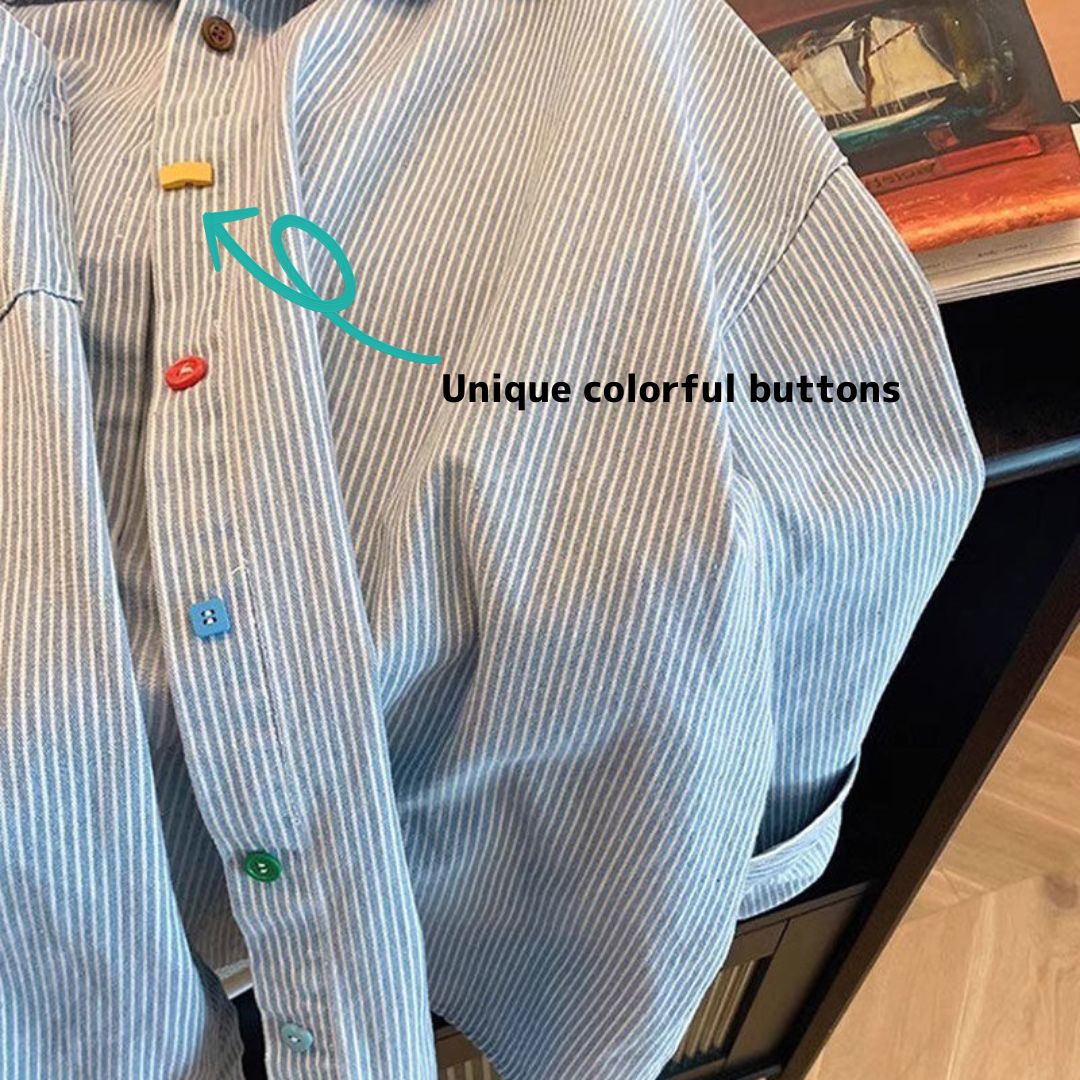 - 🌈繫扣開合:獨特的彩色鈕手口為襯衫增添了一絲俏皮感,打破了傳統襯衫的沉悶感。