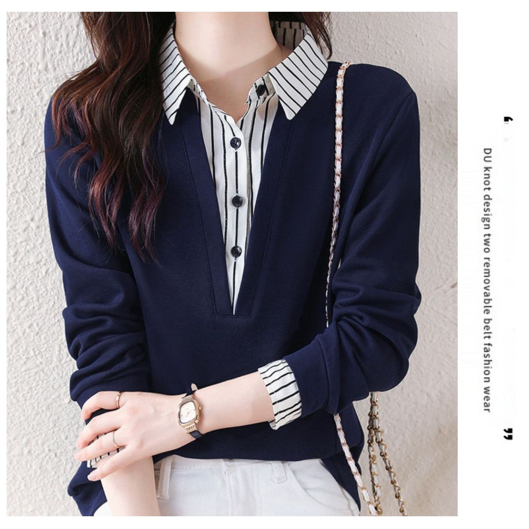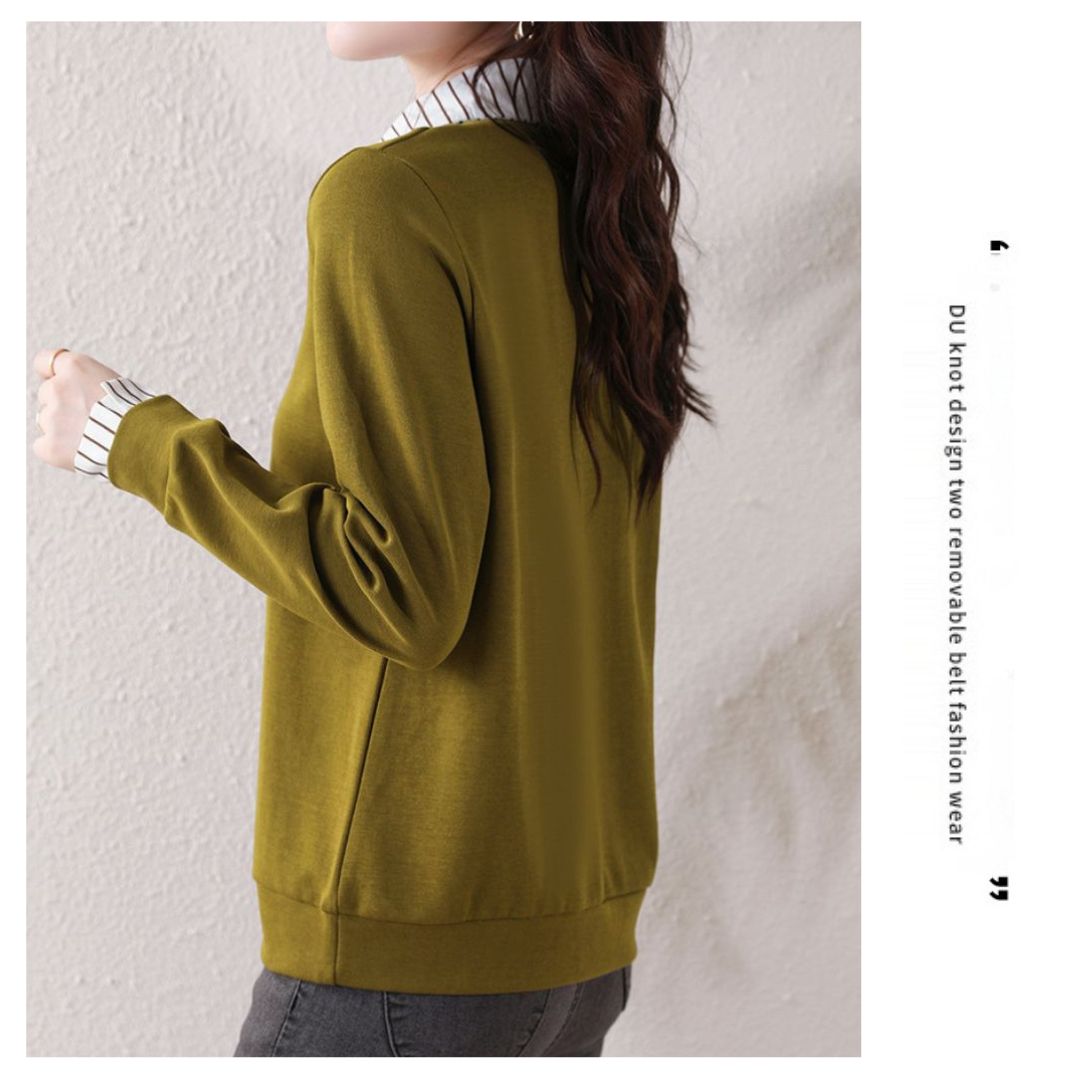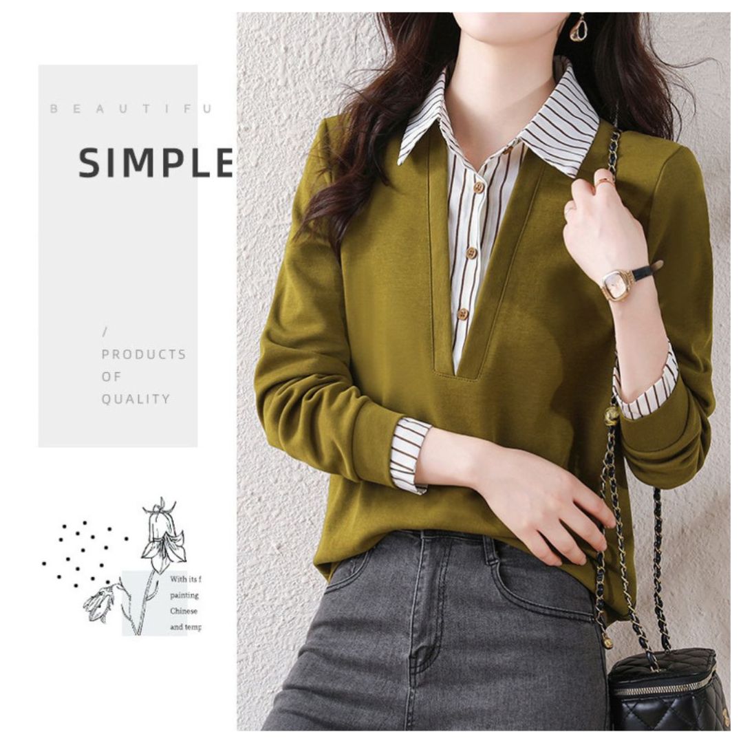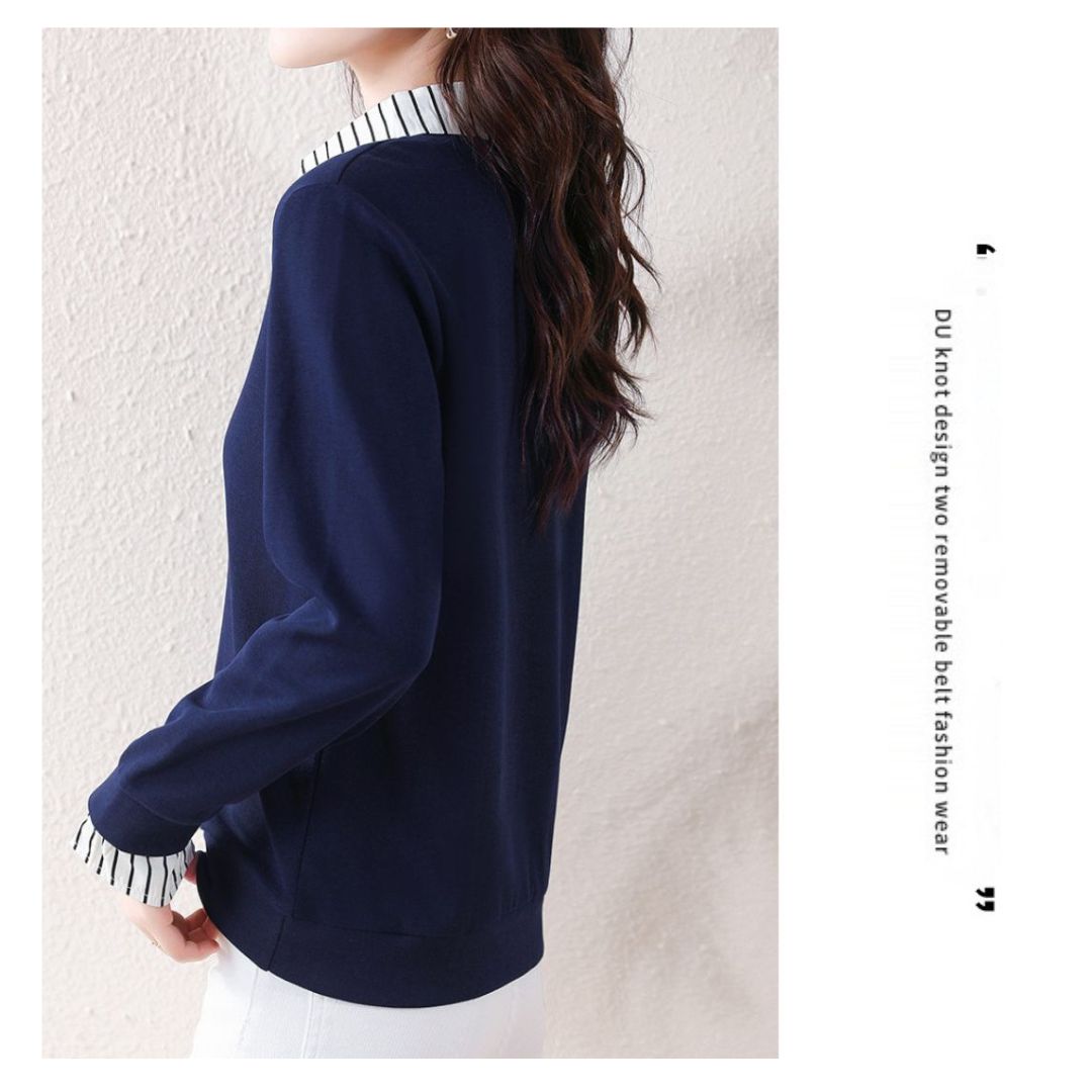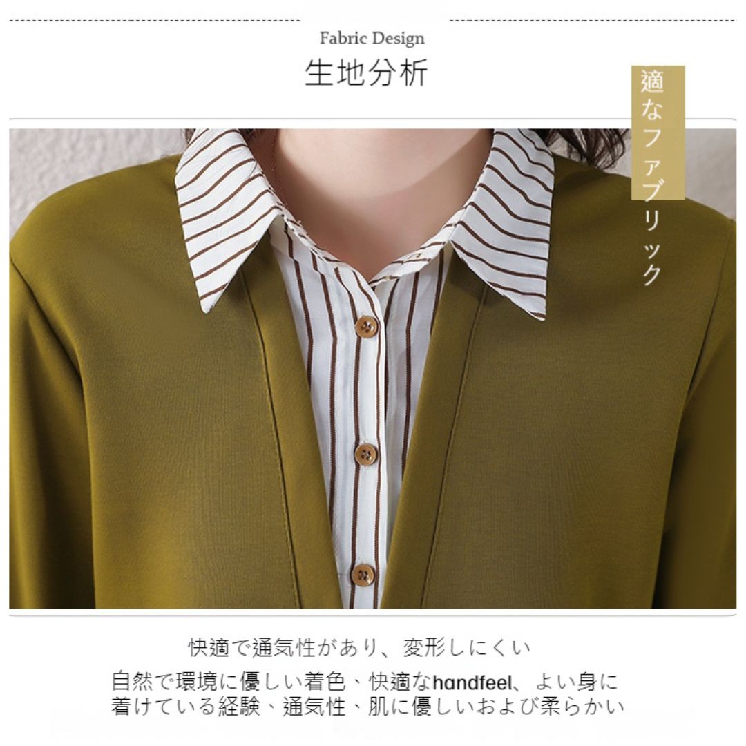 - 復古拼接設計:條紋翻領結合襯衫式袖口,營造「不用疊穿」的立體視覺效果。
