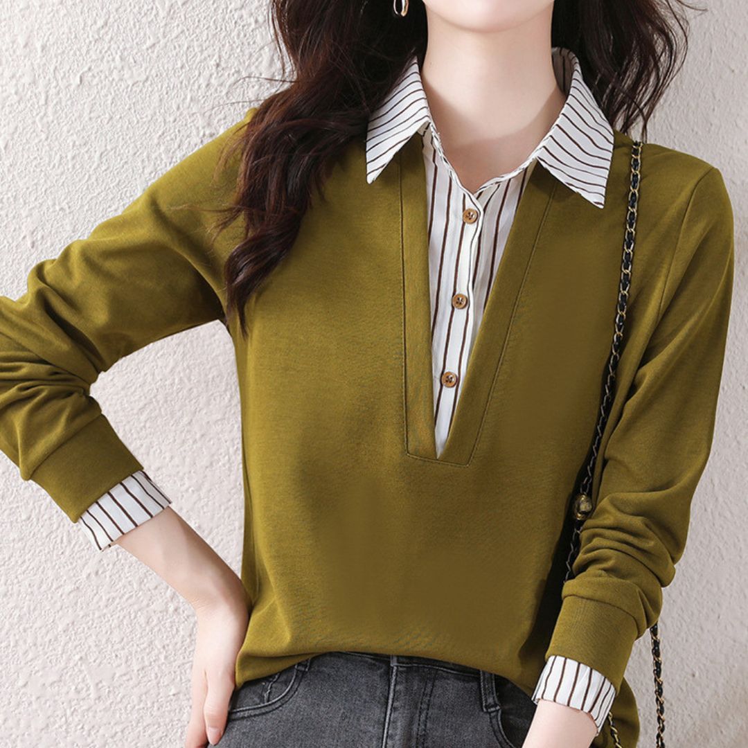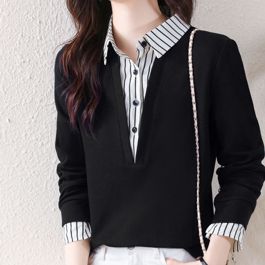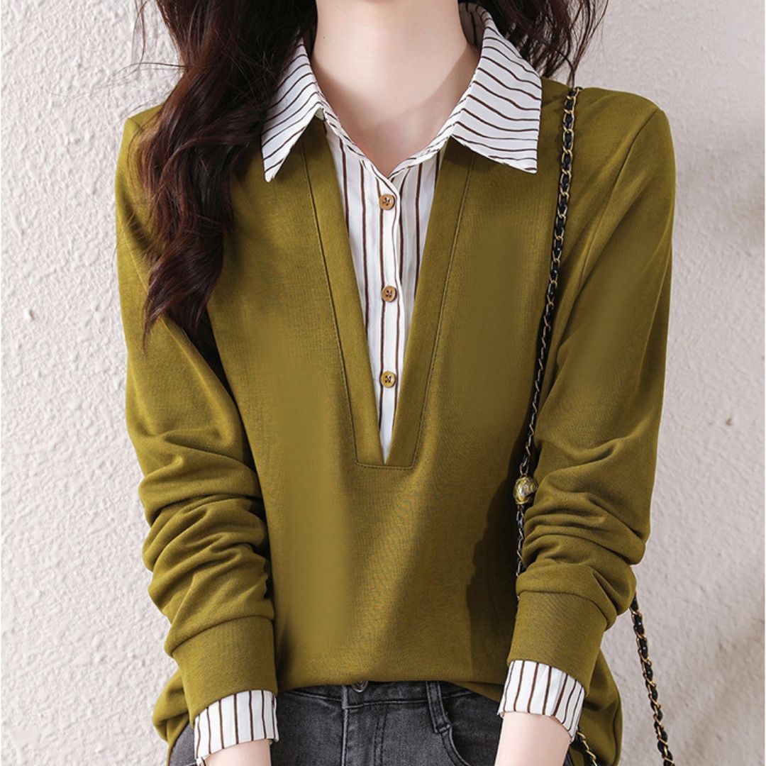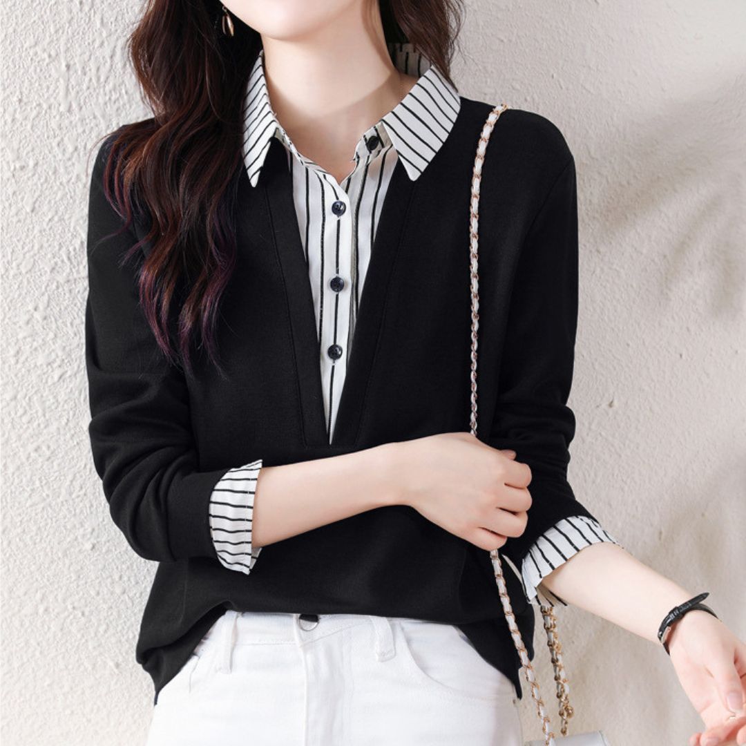 - 復古拼接設計:條紋翻領結合襯衫式袖口,營造「不用疊穿」的立體視覺效果。