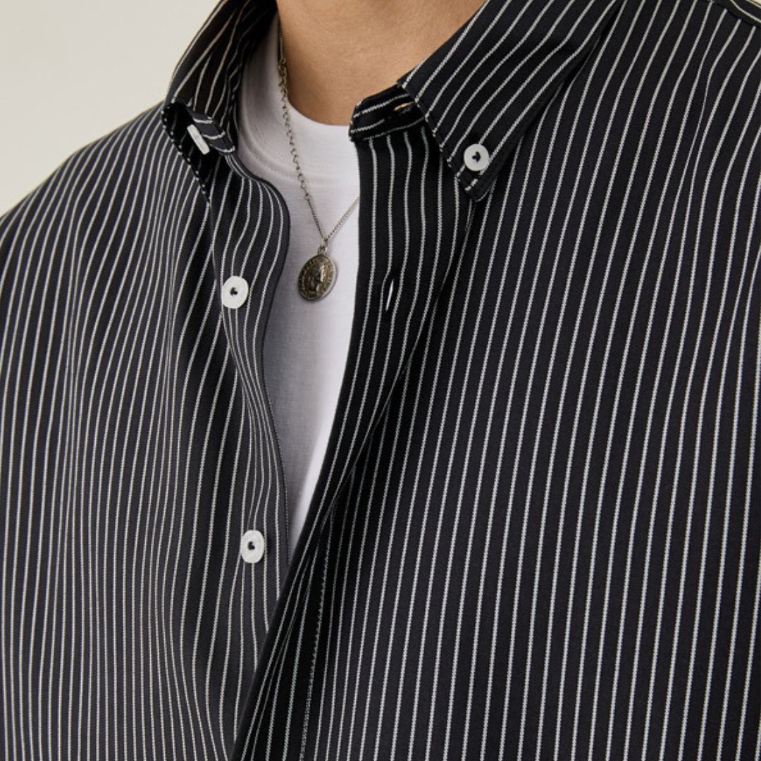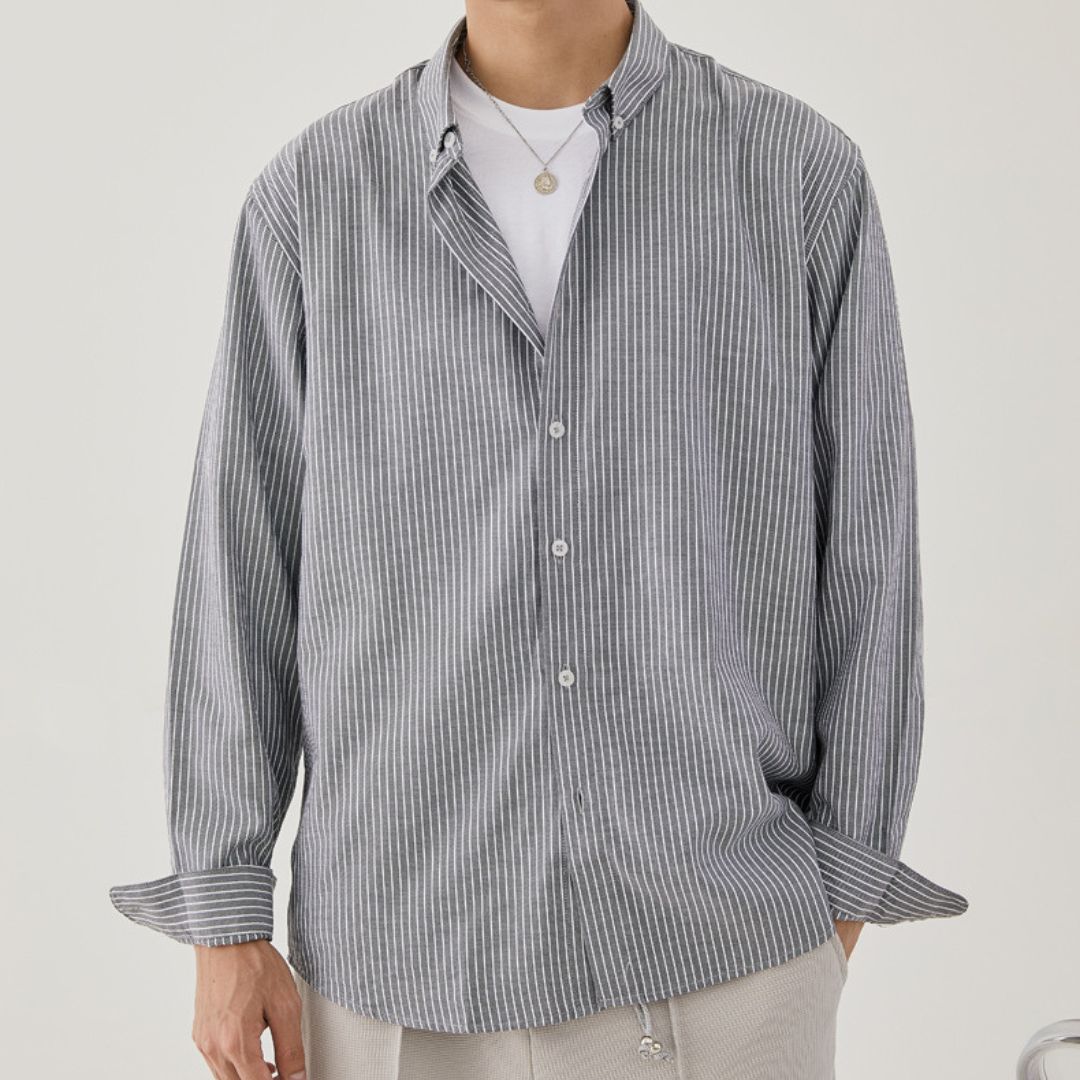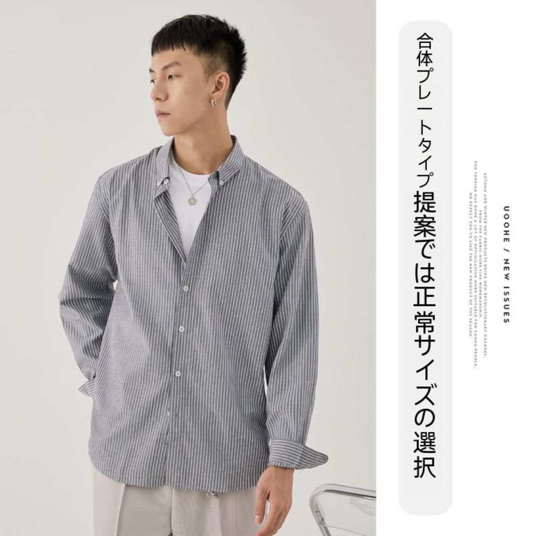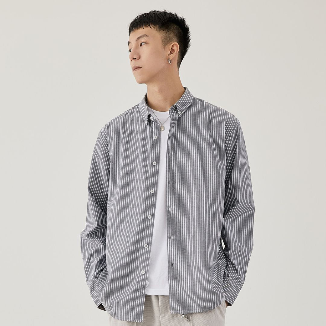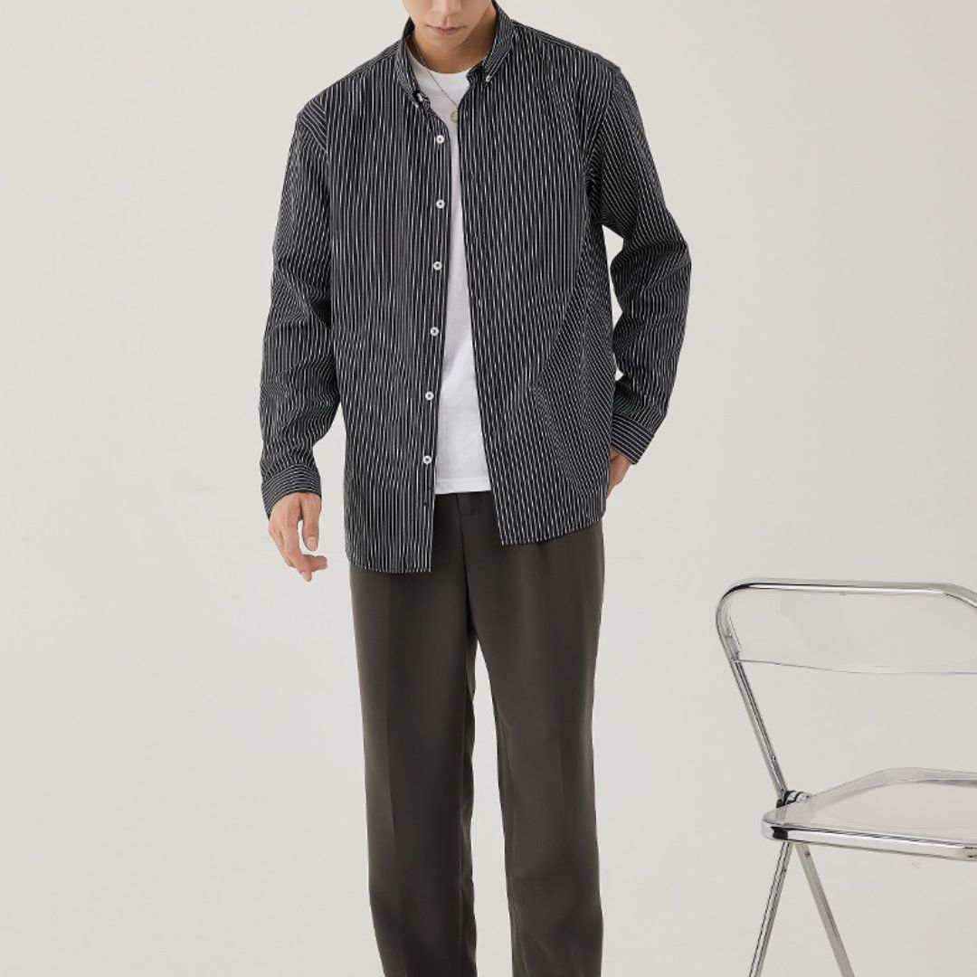 🌟 春秋新款商務休閒條紋翻領開衫長袖男裝襯衫