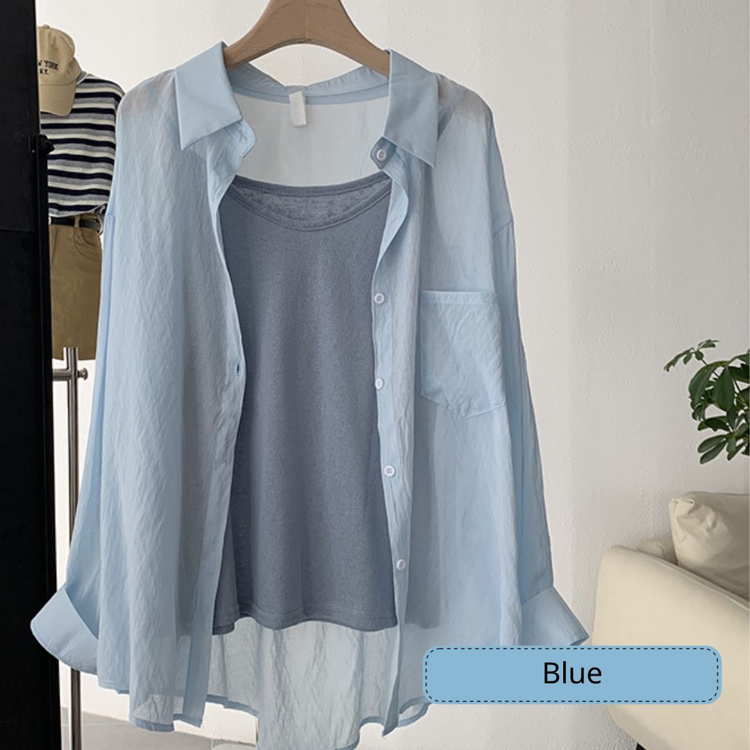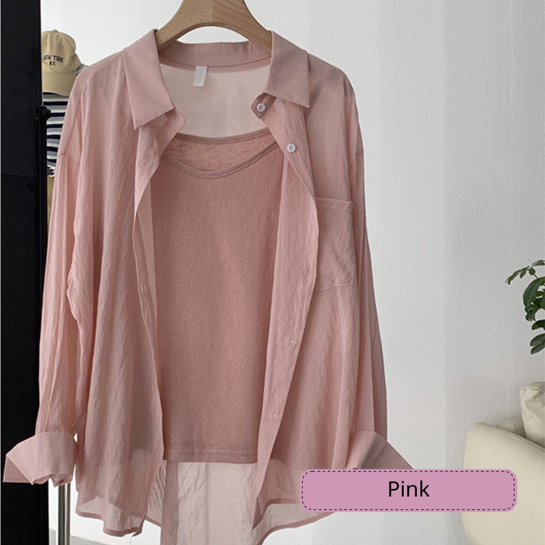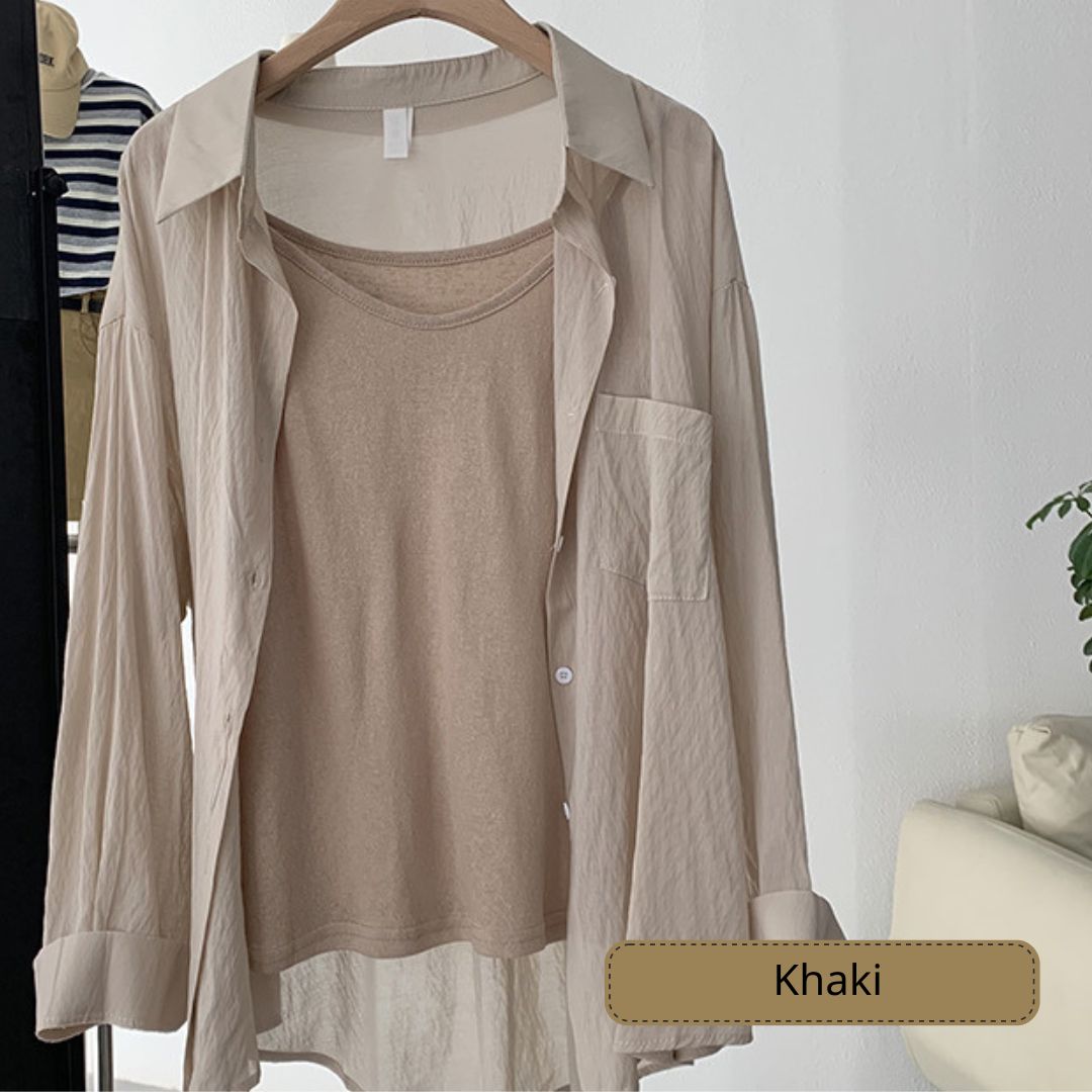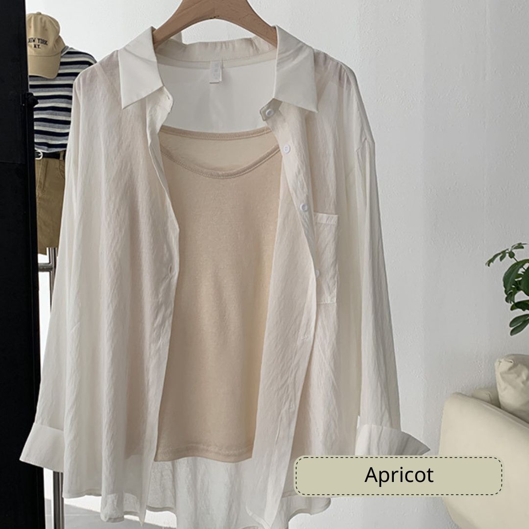 實用兩件套 👗:包含長袖衬衫和小吊帶,搭配靈活,滿足不同穿搭需求。