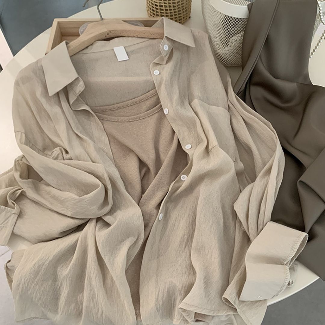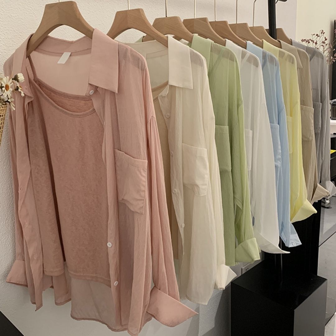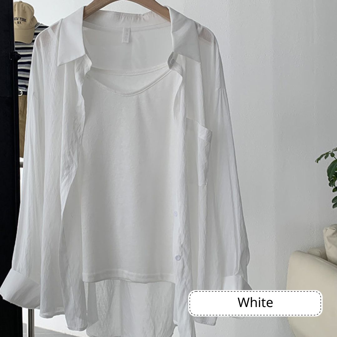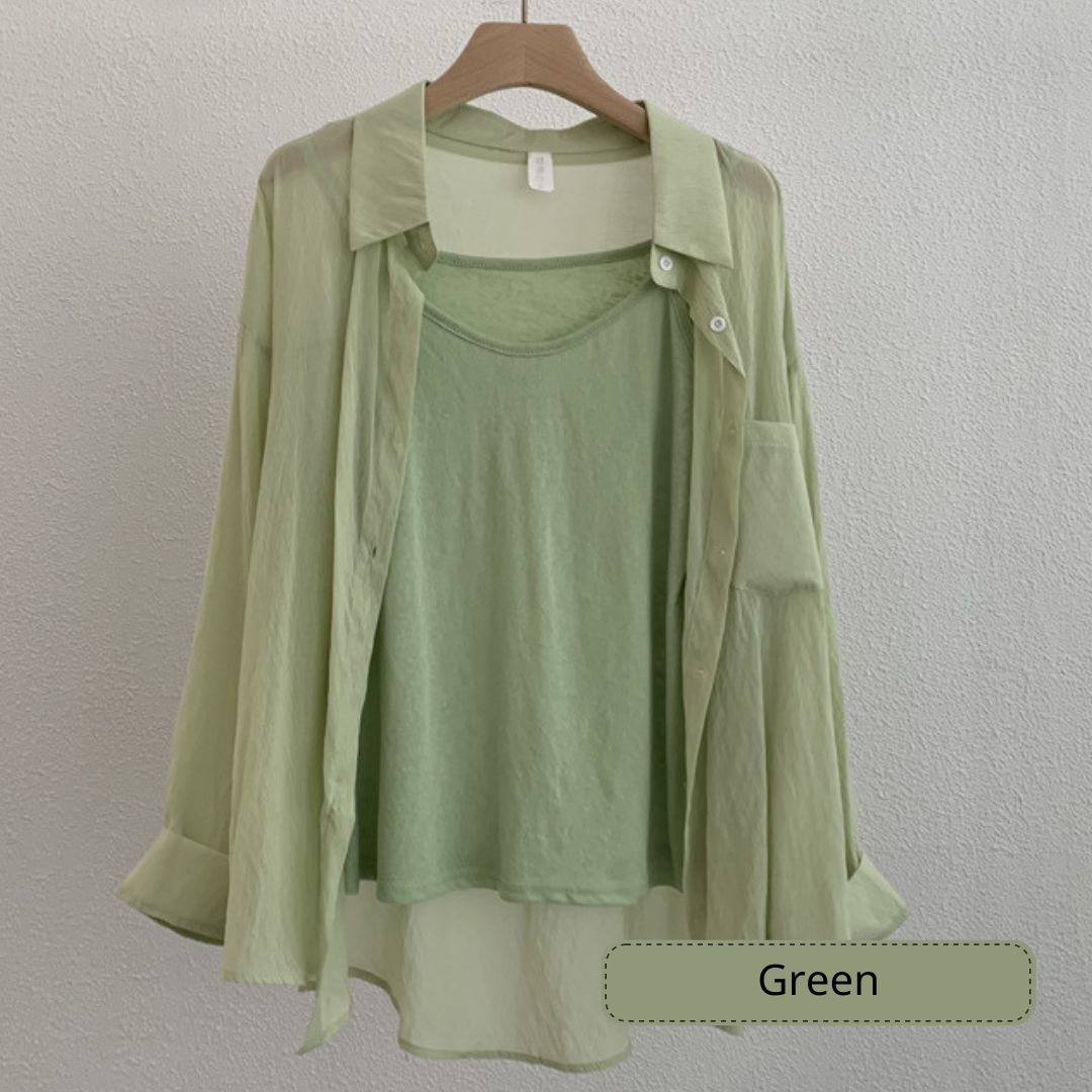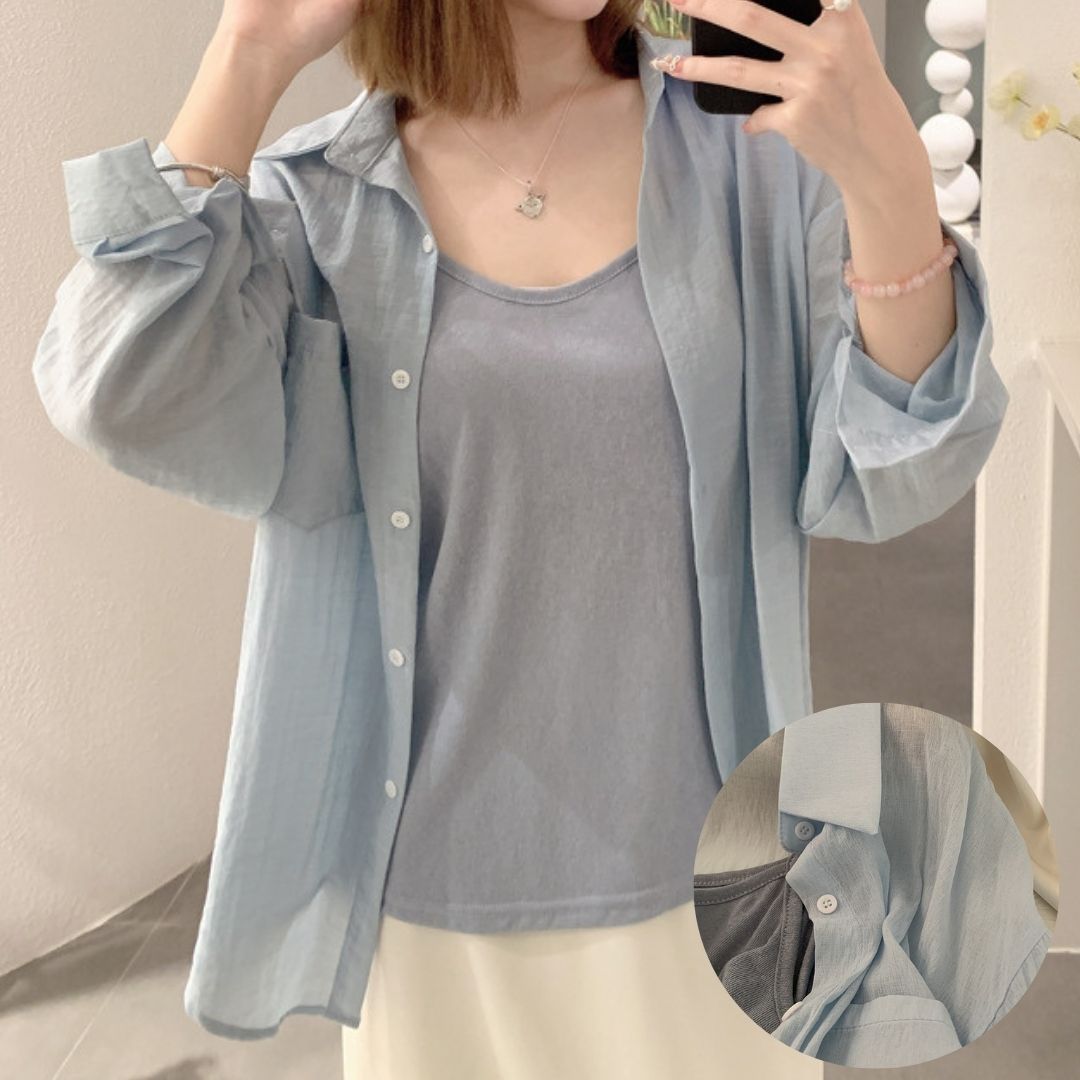 實用兩件套 👗:包含長袖衬衫和小吊帶,搭配靈活,滿足不同穿搭需求。
