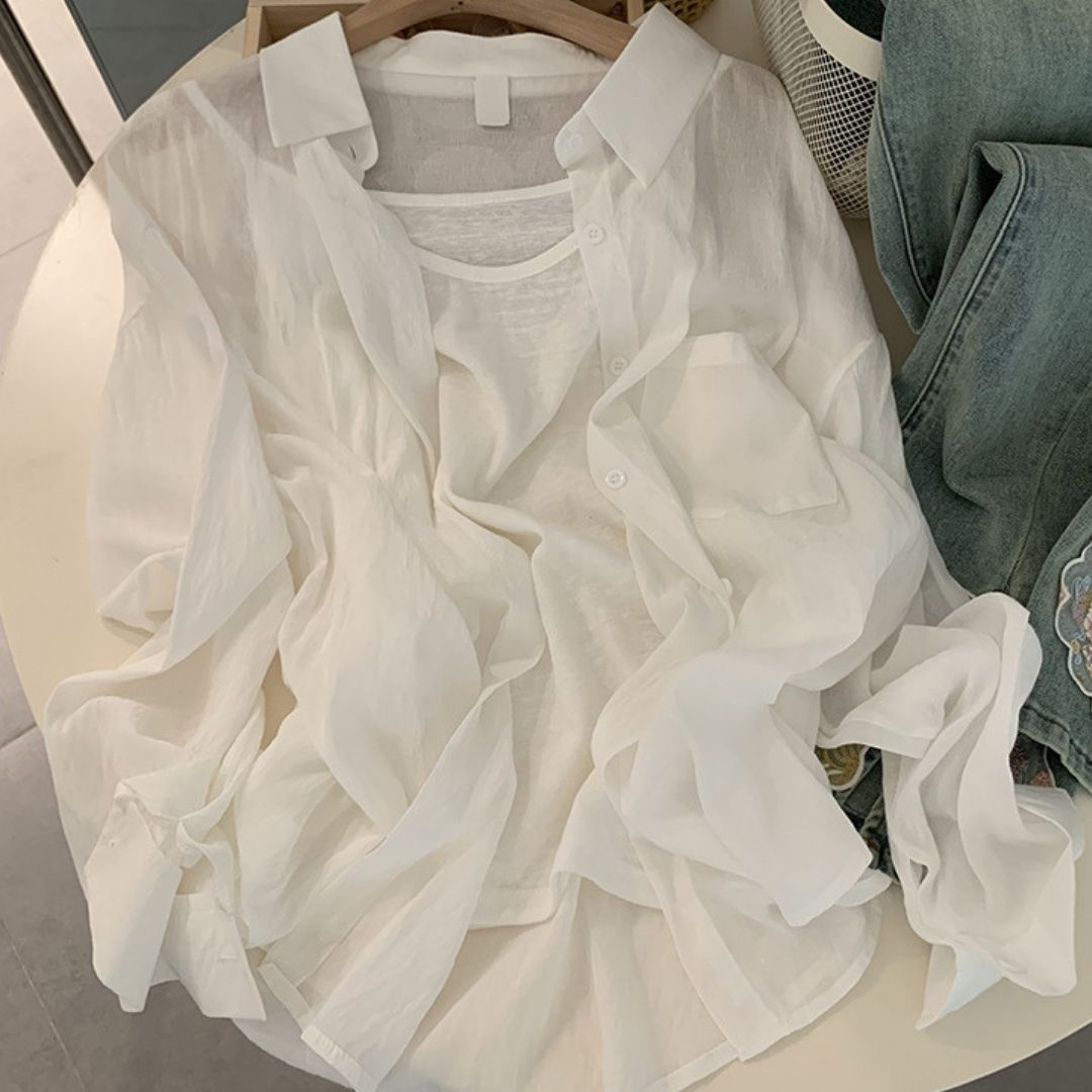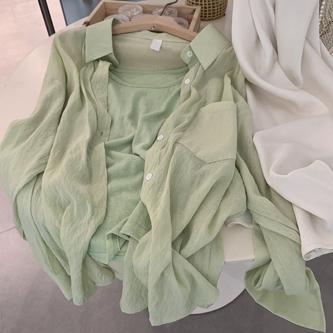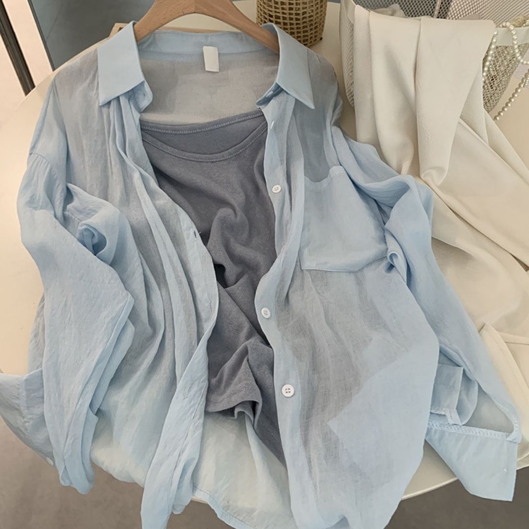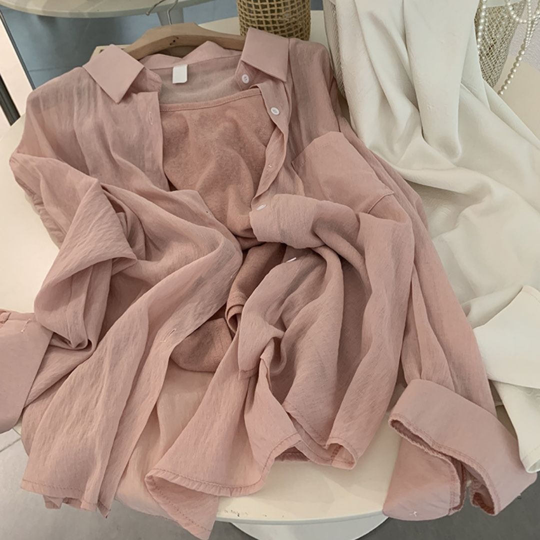 實用兩件套 👗:包含長袖衬衫和小吊帶,搭配靈活,滿足不同穿搭需求。