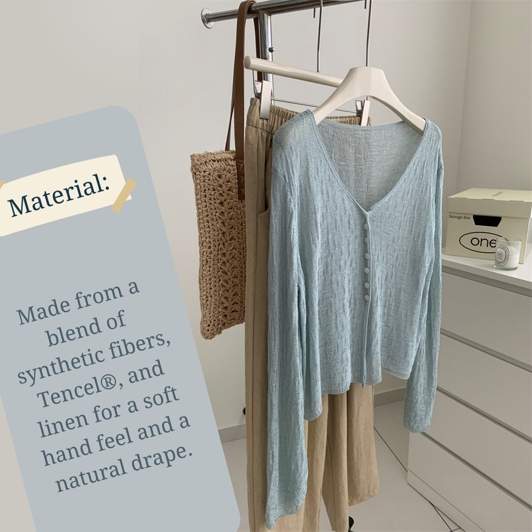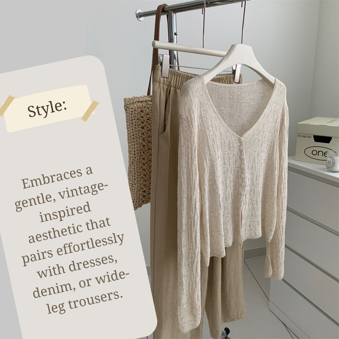 · 🎀功能:非常適合初秋穿搭,或當作空調開襟衫。透氣輕盈的布料,可無縫適應室內外溫差變化。